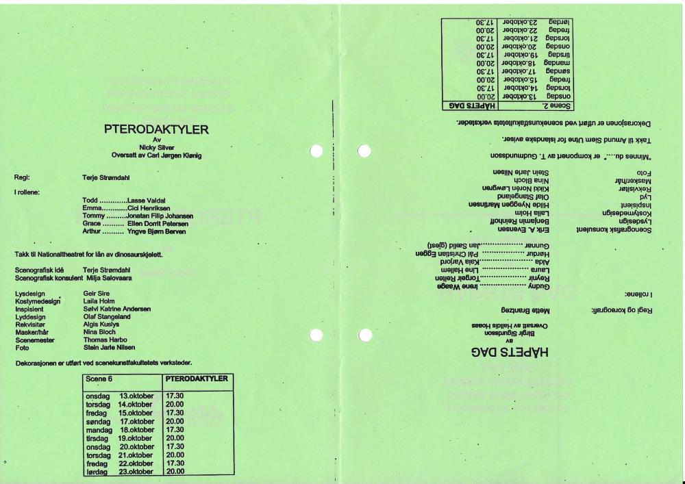 Program til Statens teaterhøgskoles studentvisning Pterodaktyler (2004)