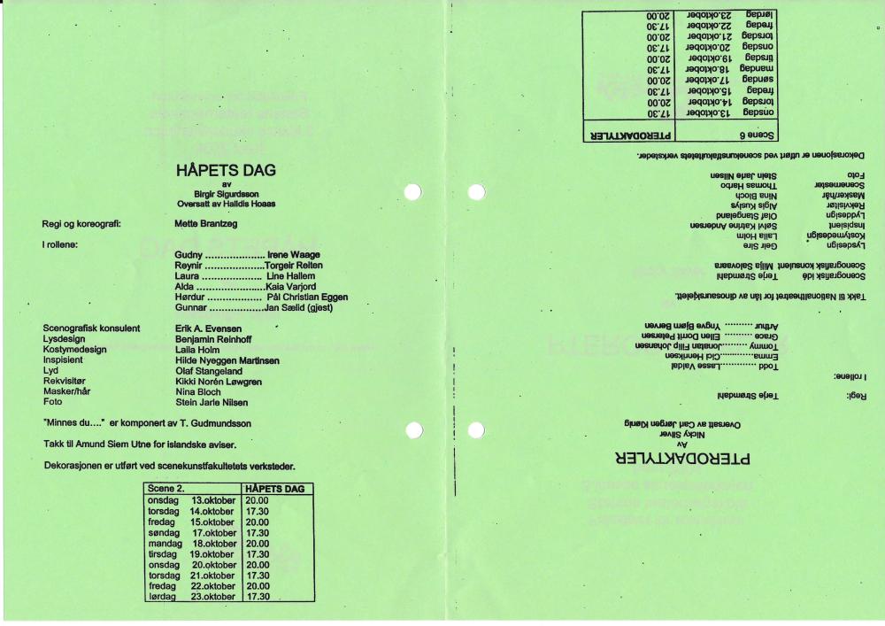 Program til Statens teaterhøgskoles studentvisning Håpets dag (2004)