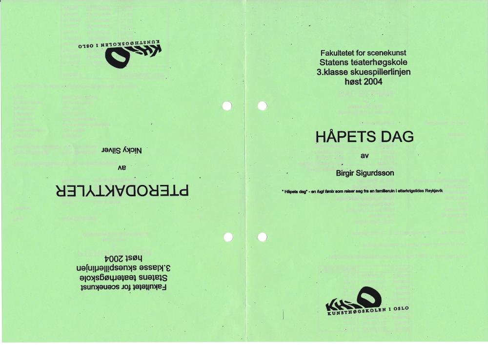 Program til Statens teaterhøgskoles studentvisning Håpets dag (2004)