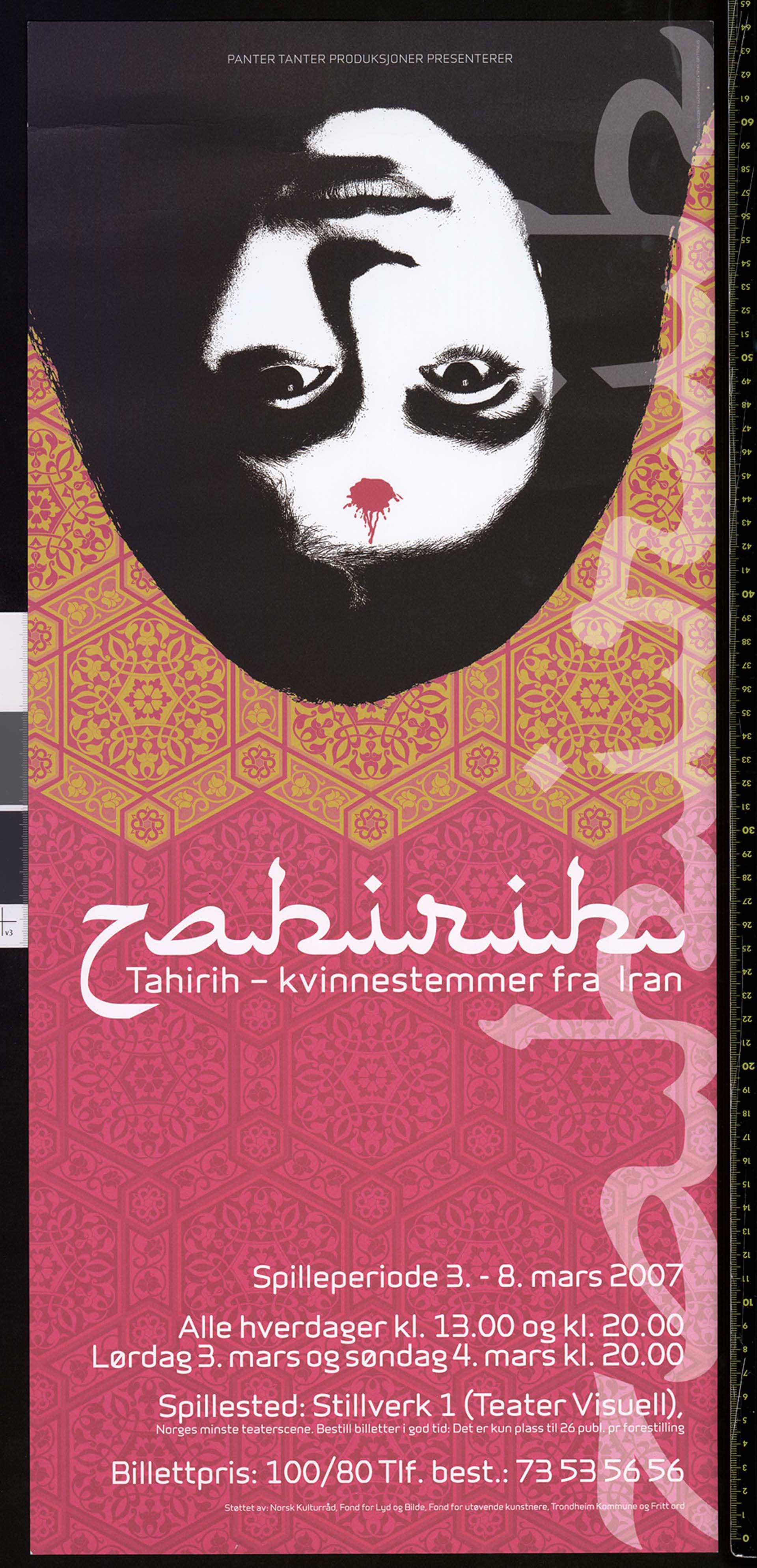 Plakat for Panter Tanter Produksjoners produksjon Tahirih - kvinnestemmer fra Iran (2007).