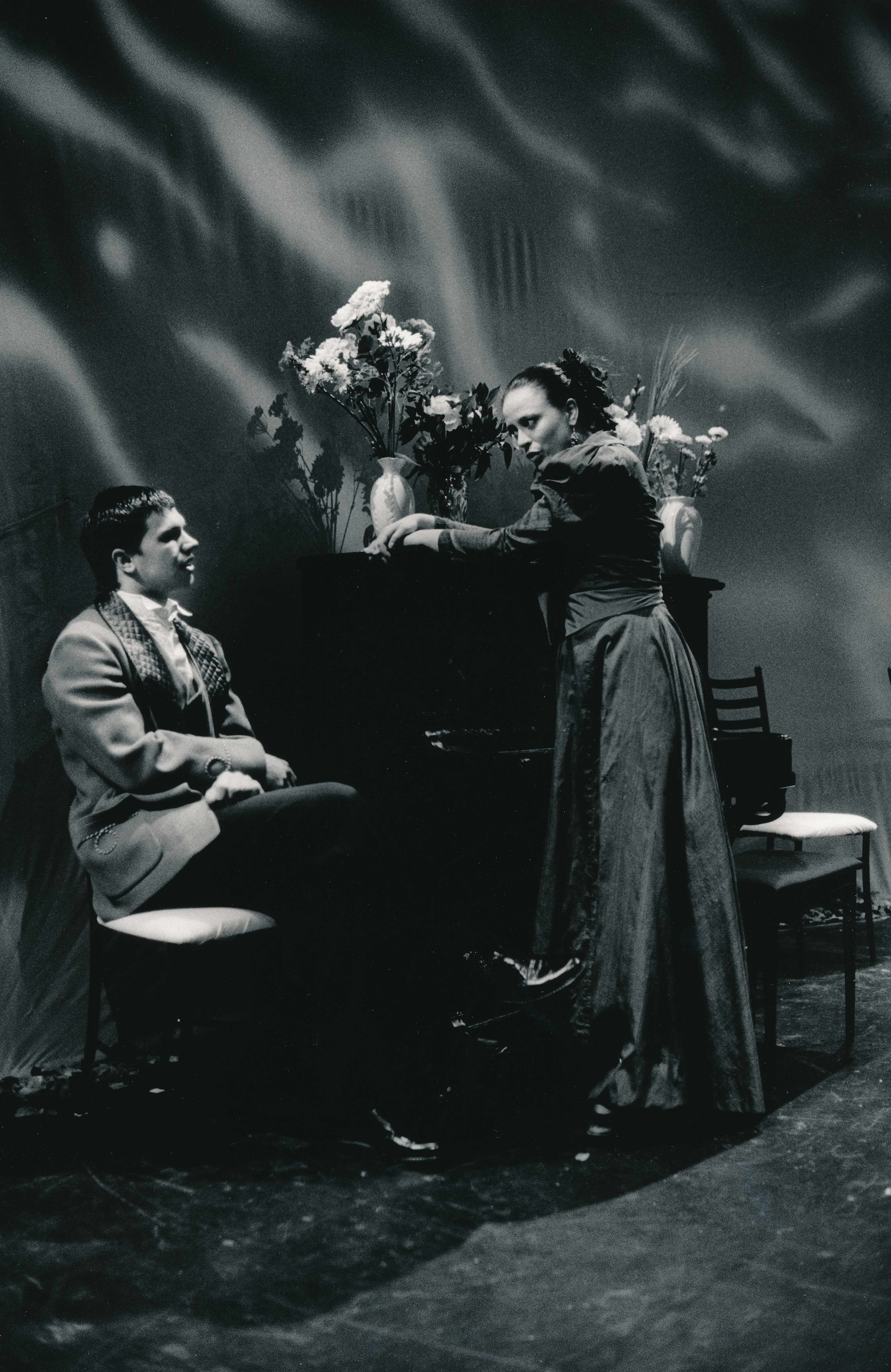 Fotografi fra Statens teaterhøgskoles studentproduksjon Hedda Gabler (1999).