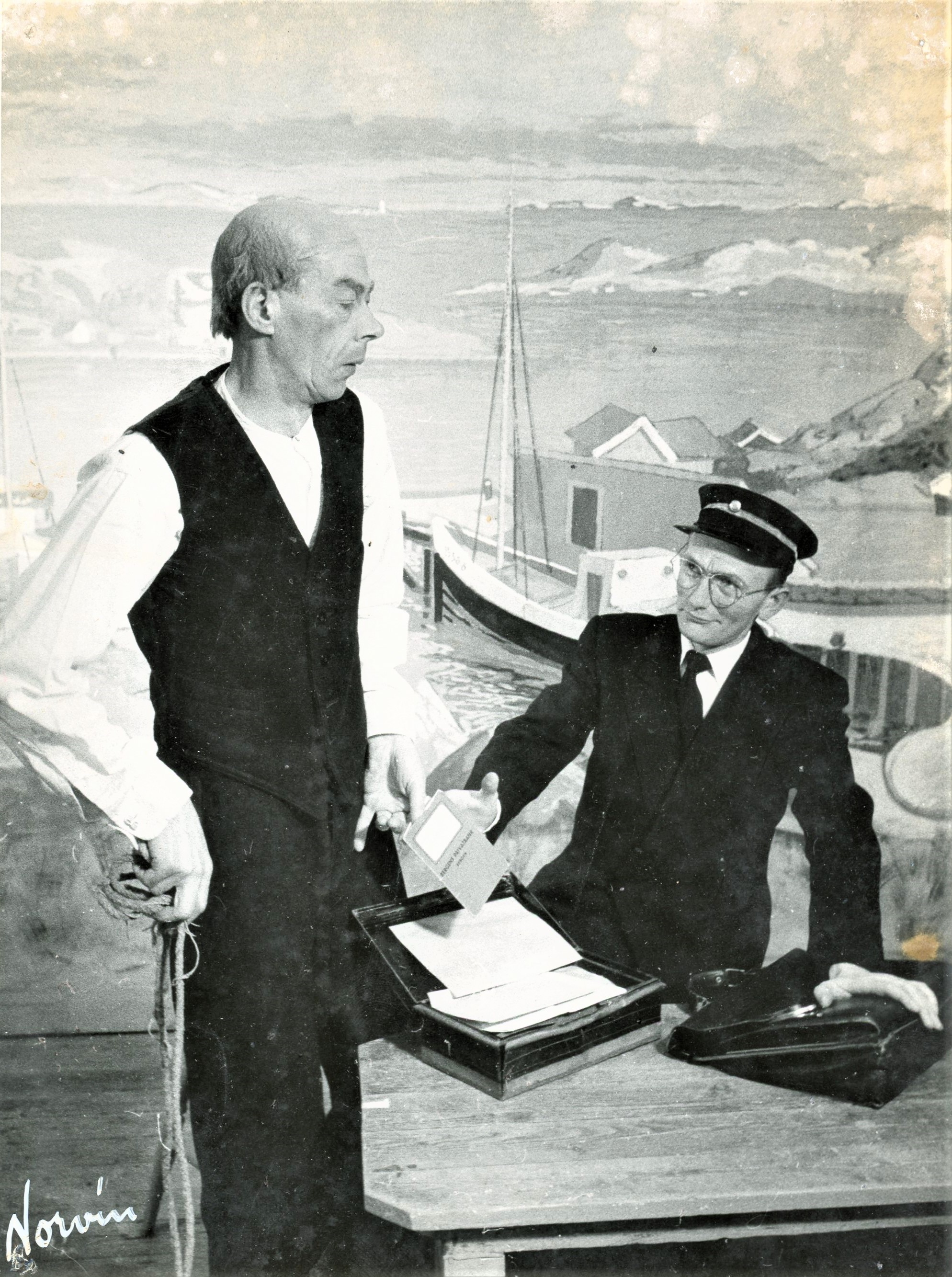 Fotografi fra Komediateatrets produksjon Arvebrevet, 1956.
