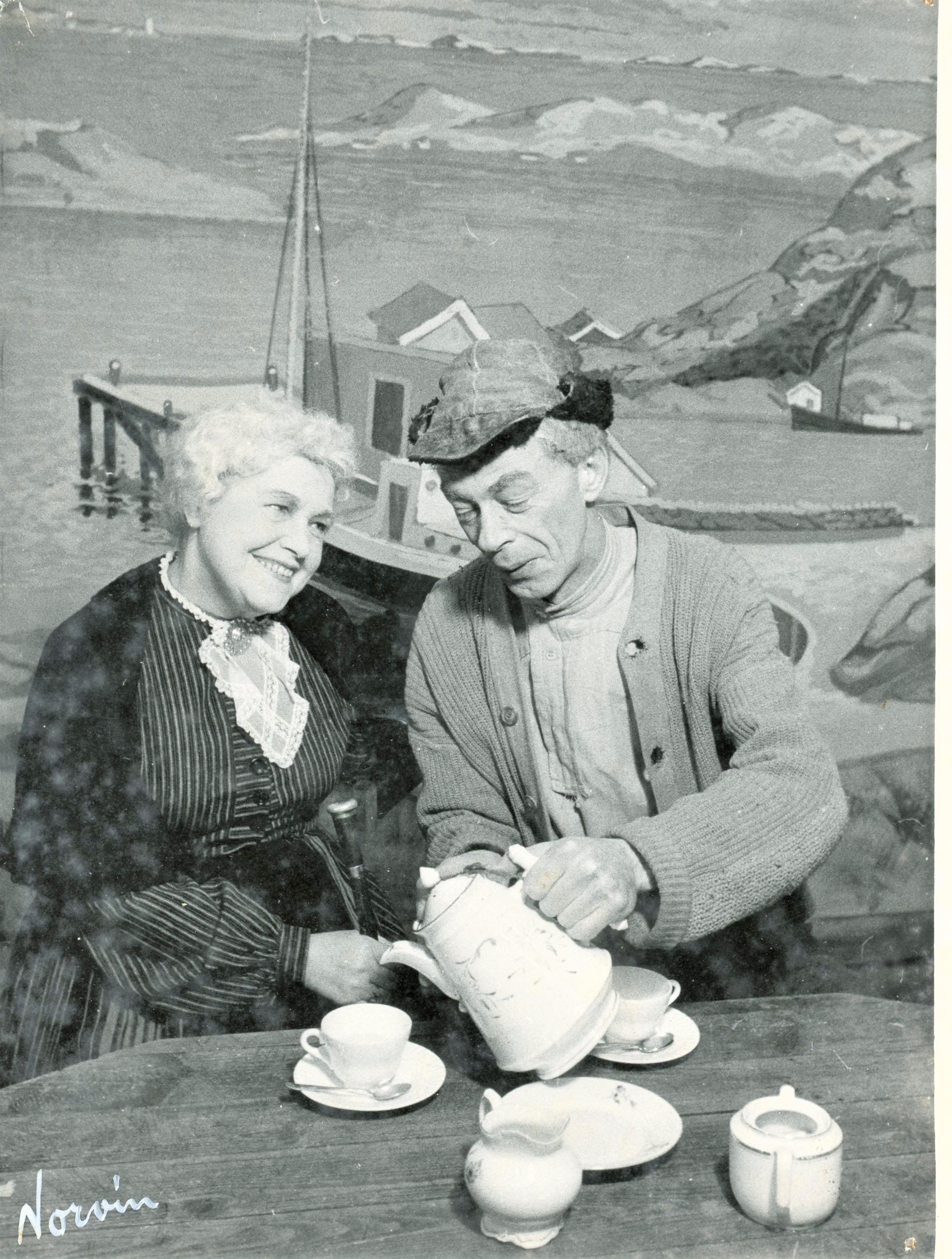 Fotografi fra Komediateatrets produksjon Arvebrevet, 1956.