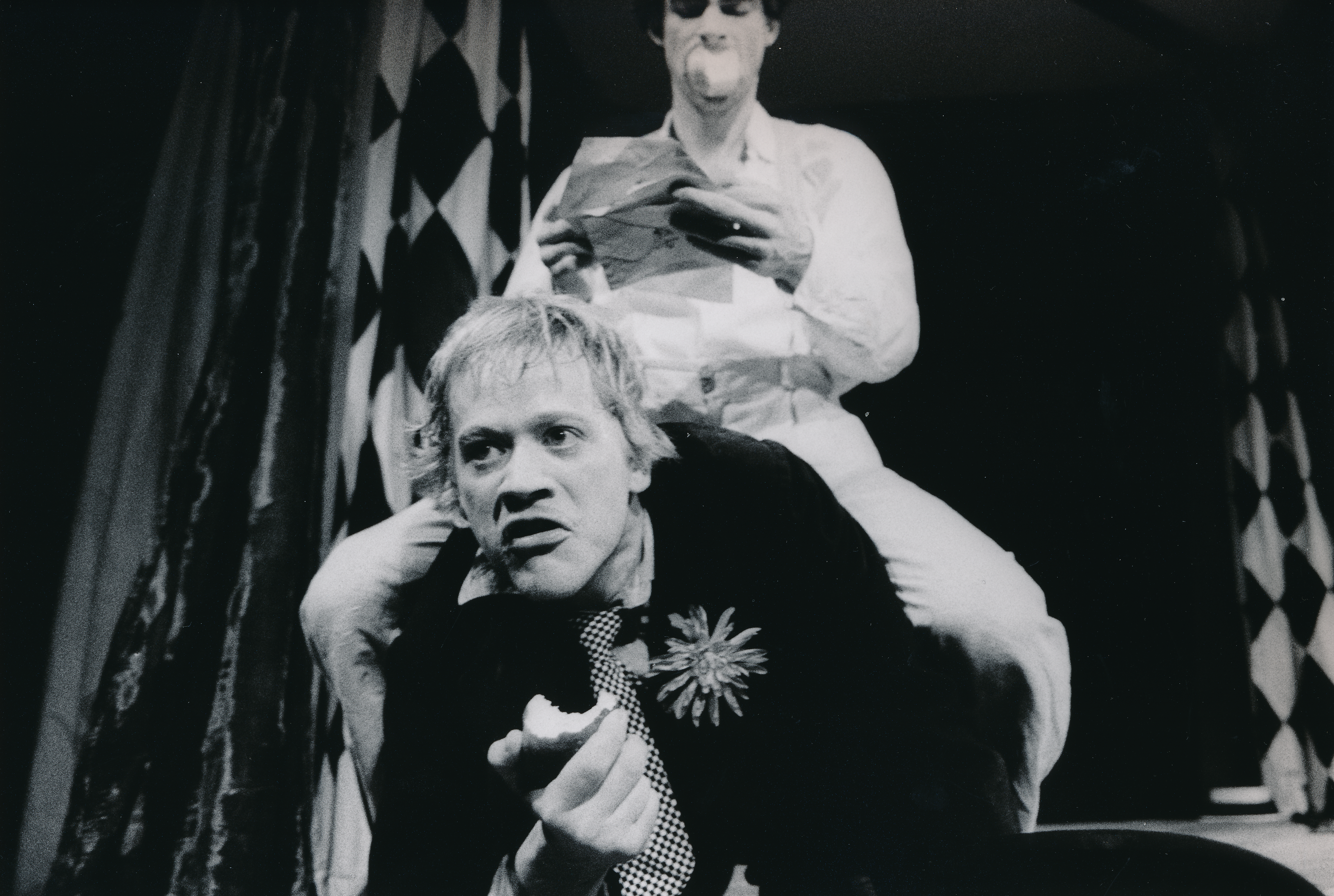 Fotografi fra Statens teaterhøgskoles studentproduksjon Tjener for to herrer (1997).