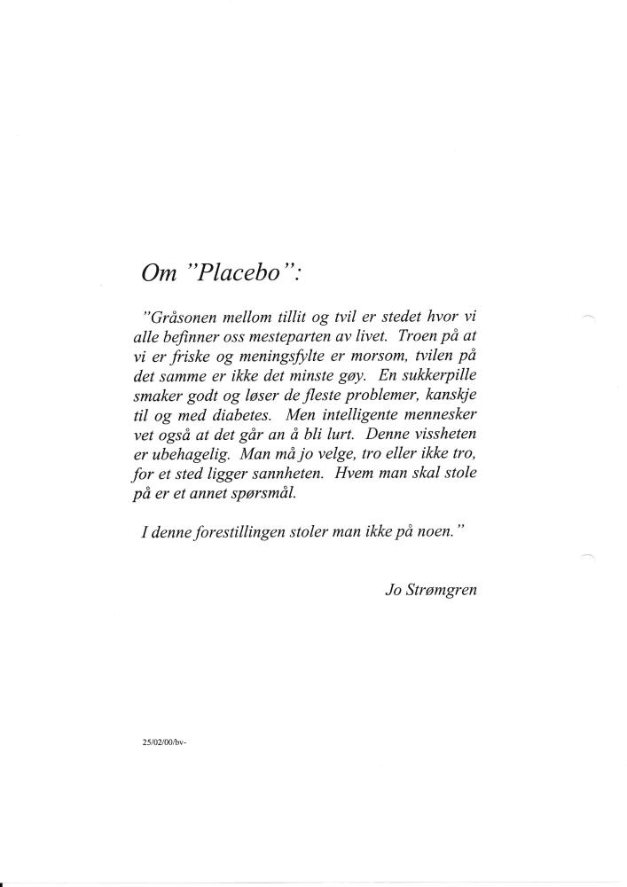 Program til Statens teaterhøgskoles studentproduksjon Placebo (2000).