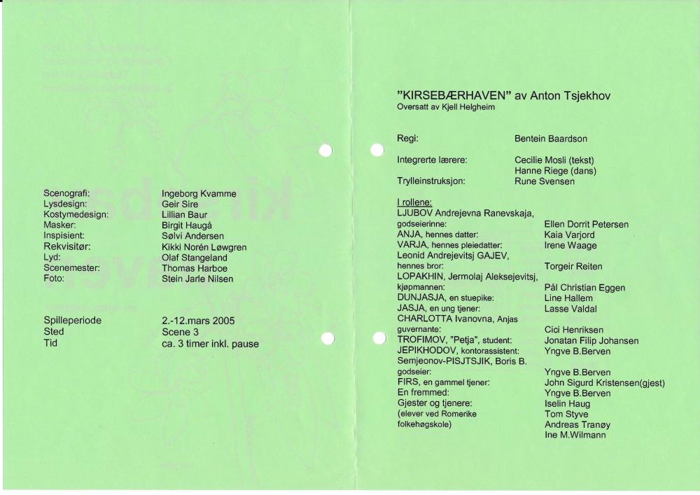 Program til Teaterhøgskolens studentforestilling Kirsebærhaven(2005)