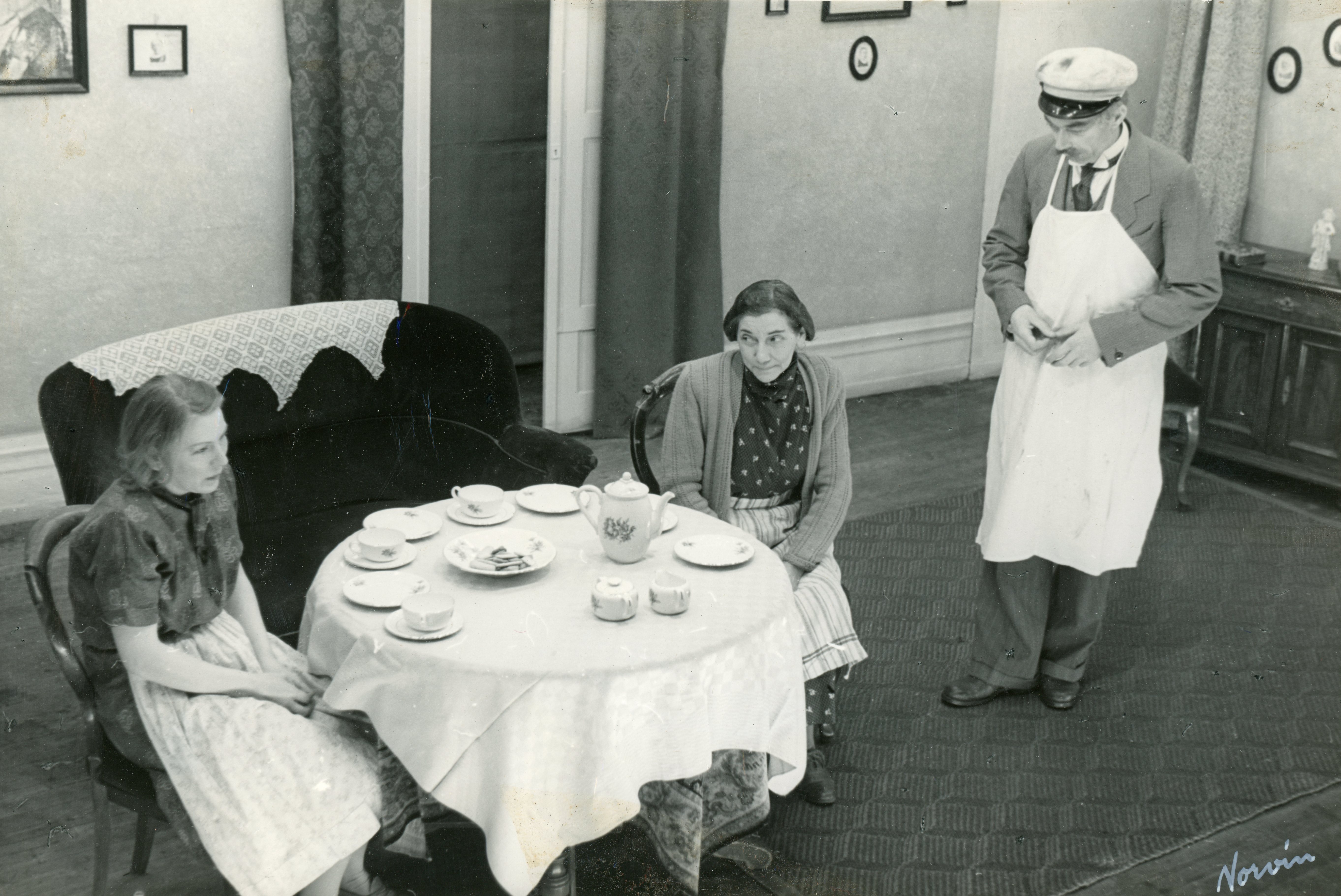 Fotografi fra Komediateatrets produksjon Biskopen, 1950.