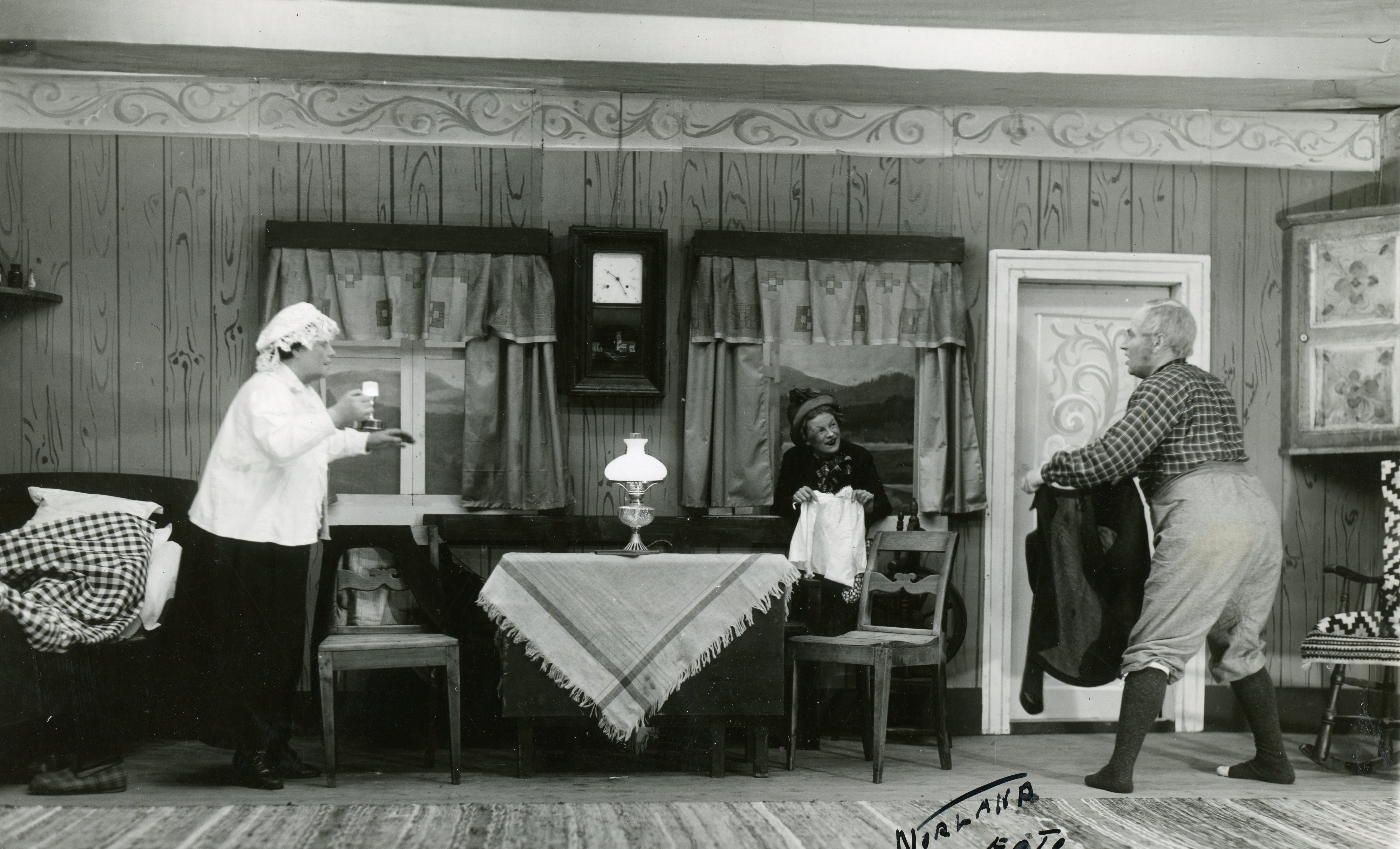 Fotografi fra Komediateatrets produksjon Bertels gjenvordigheter (1938)