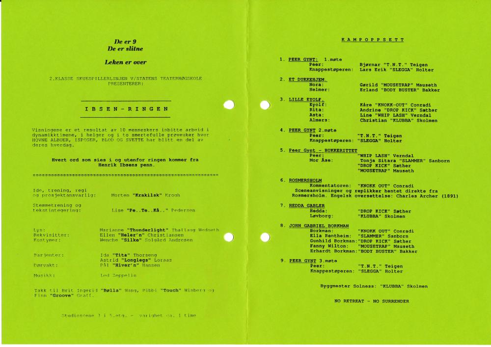 Program til Statens teaterhøgskoles studentproduksjon Ibsen-ringen (1994)