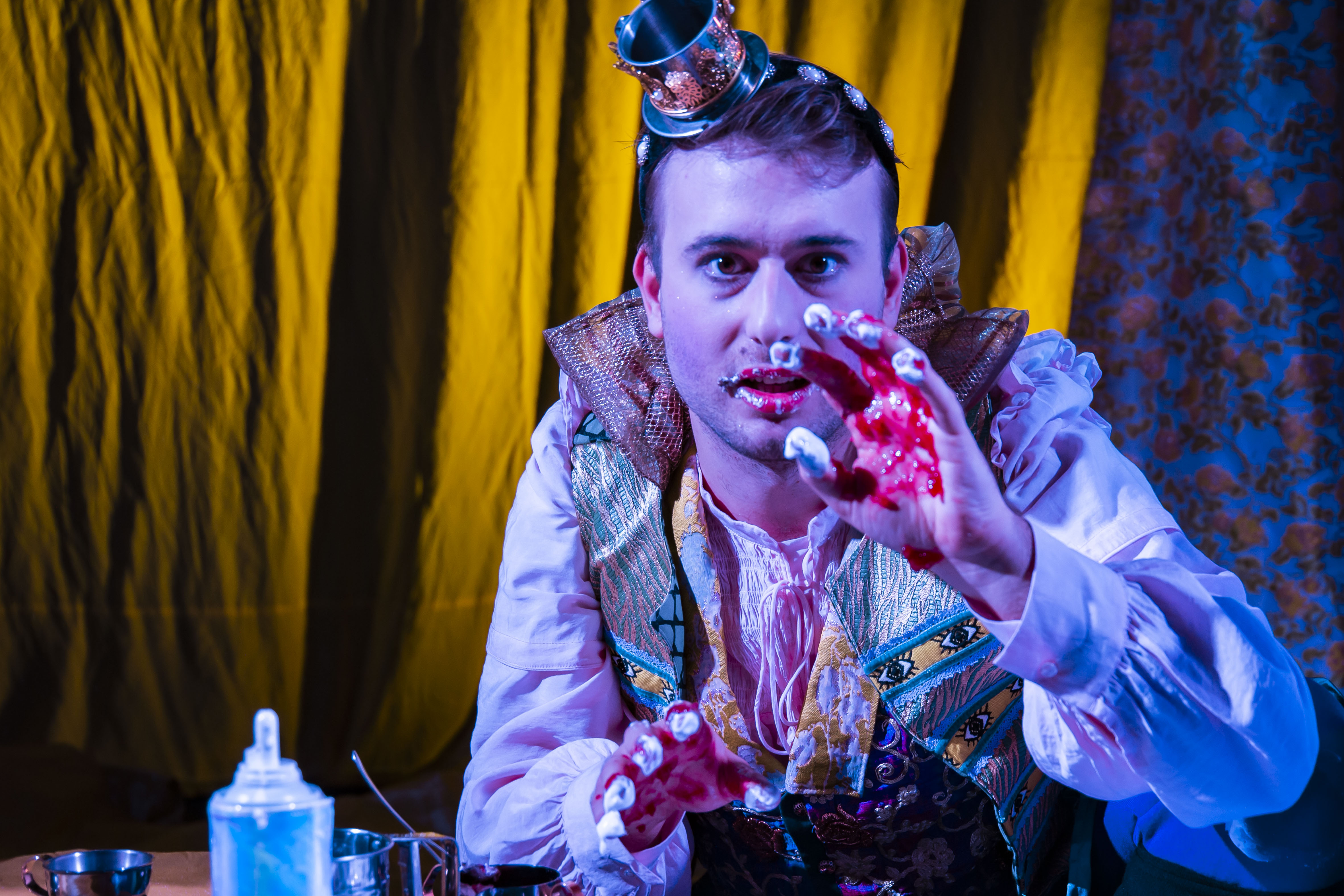 Fotografi fra Fabulariums produksjon Fyrsten – et teselskap om demokratiets forfall (2021)
