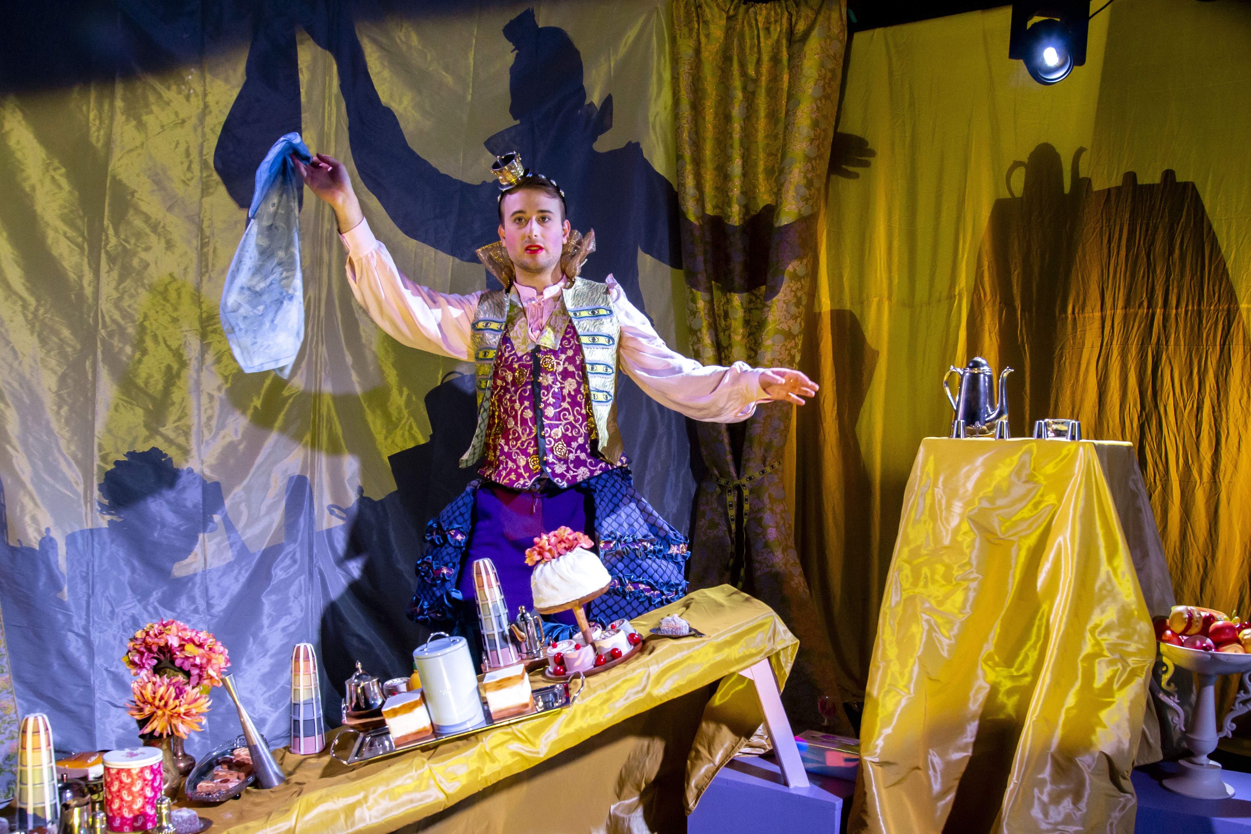 Fotografi fra Fabulariums produksjon Fyrsten – et teselskap om demokratiets forfall (2021)