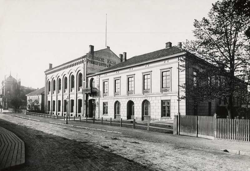 Fotografi fra Brødrene Hals' konsertlokale og pianofabrikk.
