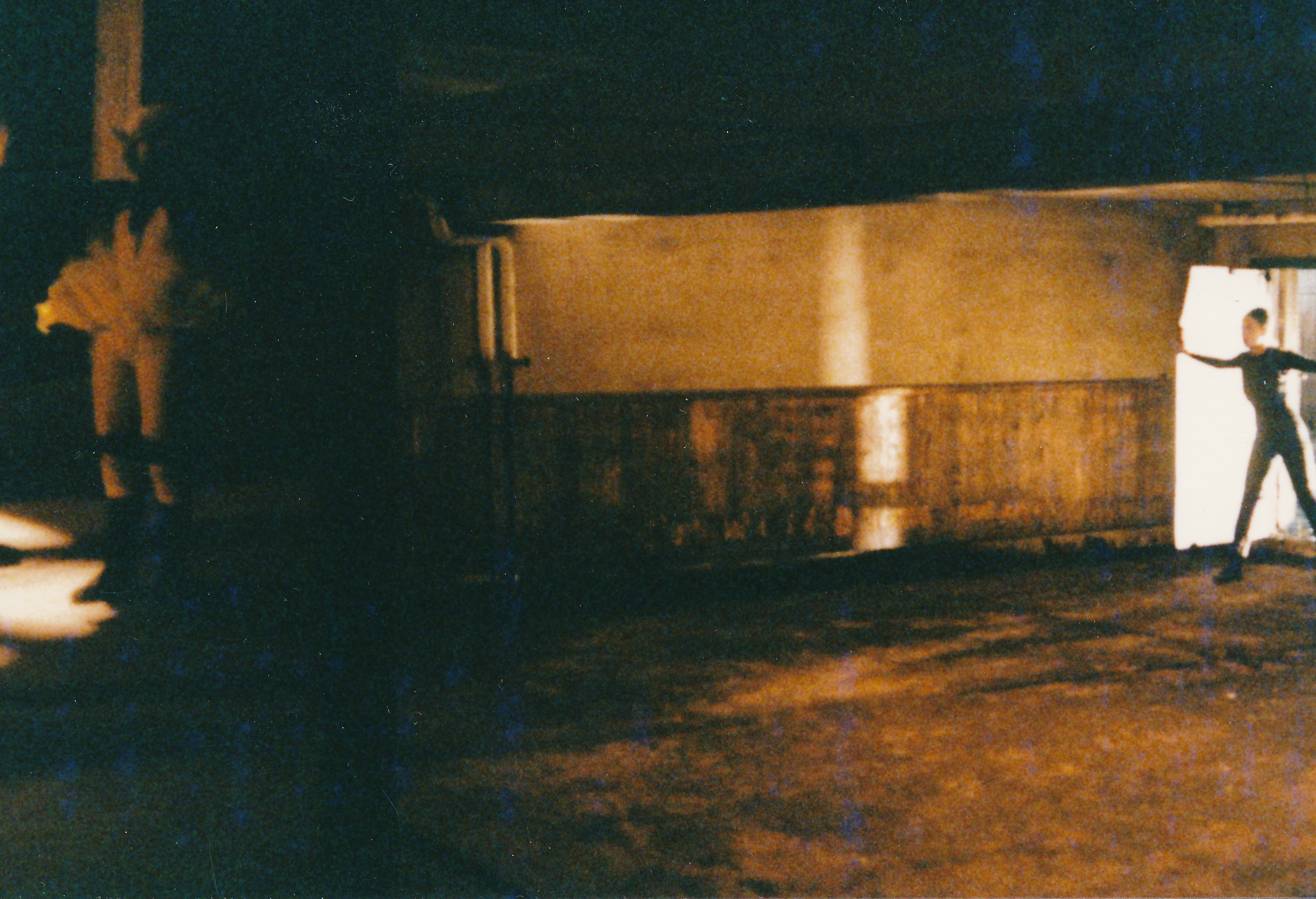 Fotografi fra Statens teaterhøgskoles studentproduksjon Det blir ikke til noe med reisen, det er bare å gå på veien her (1987)
