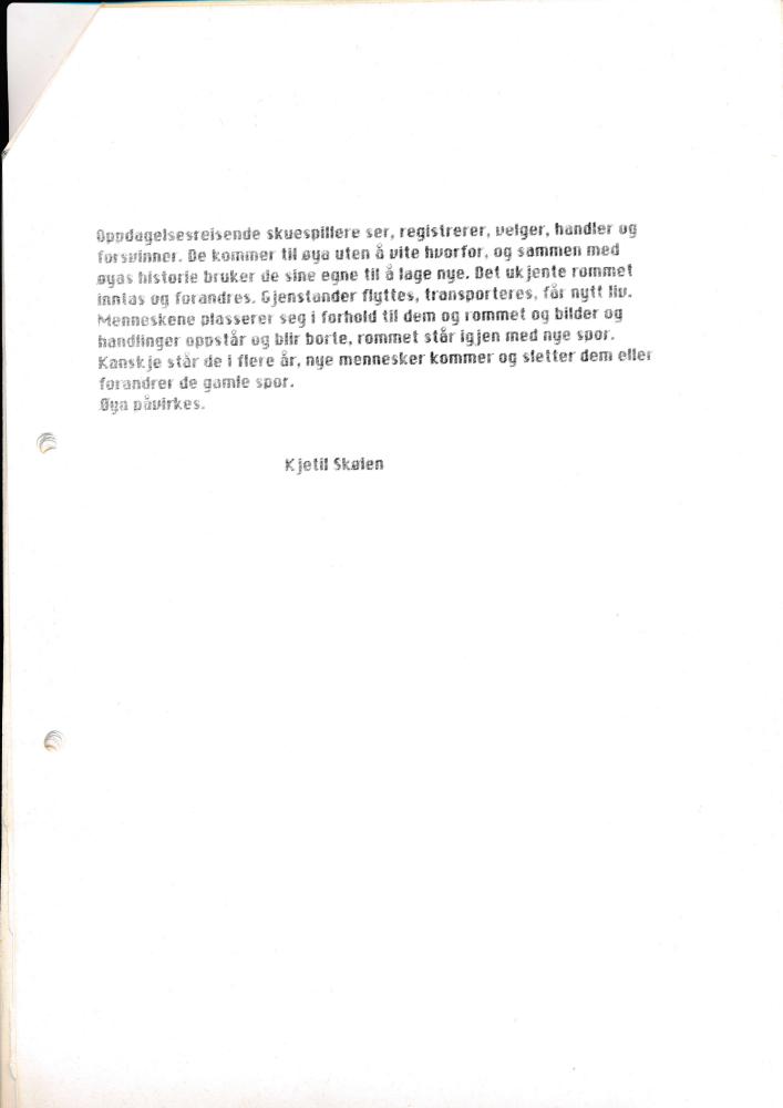 Programtekst til Det blir ikke til noe med reisen, det er bare å gå på veien her, Kjetil Skøien (1987)