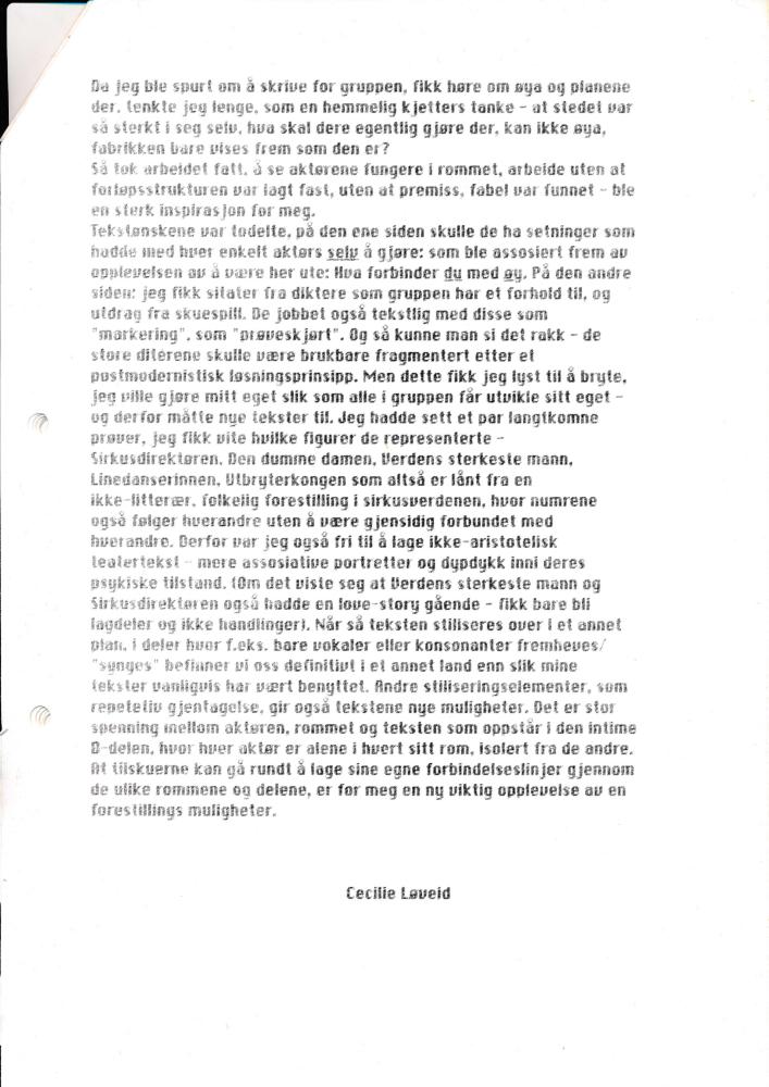 Fra programmet til Det blir ikke noe med reisen, det er bare å gå på veien her: Cecilie Løveid (1987)