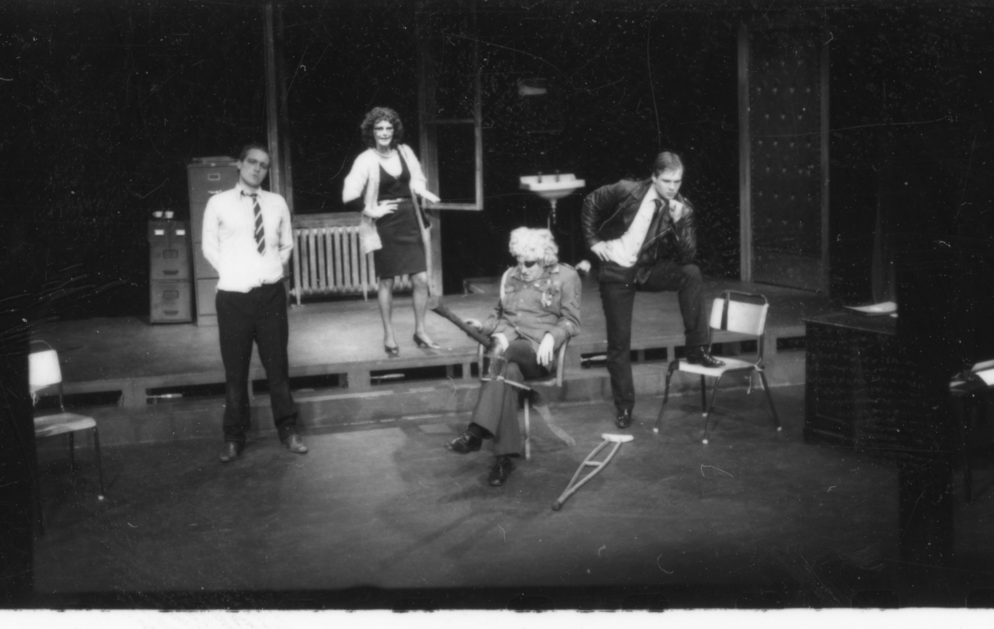 Fotografi fra Statens teaterskoles elevvisning Anarkisten som døde ved et ulykkestilfelle (1982)