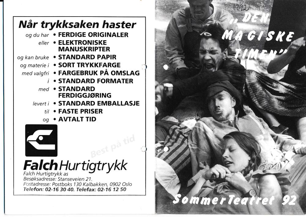 Program til Statens teaterhøgskole sommerteater Den magiske timen 1992