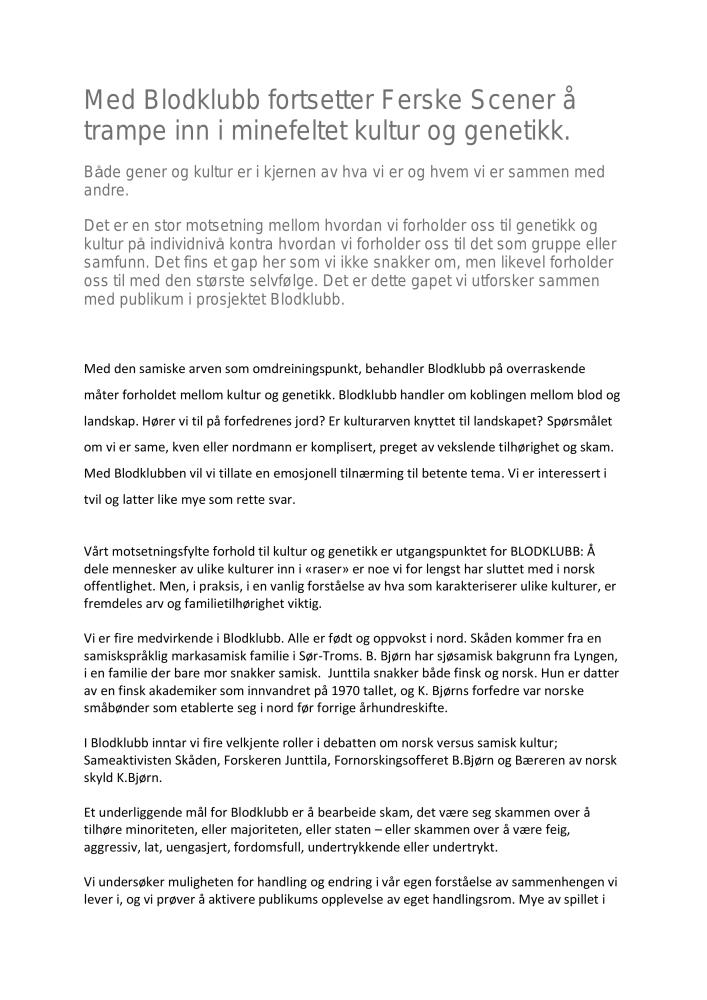 Tekst av Ferske Scener om deres produksjon Blodklubb (2019).