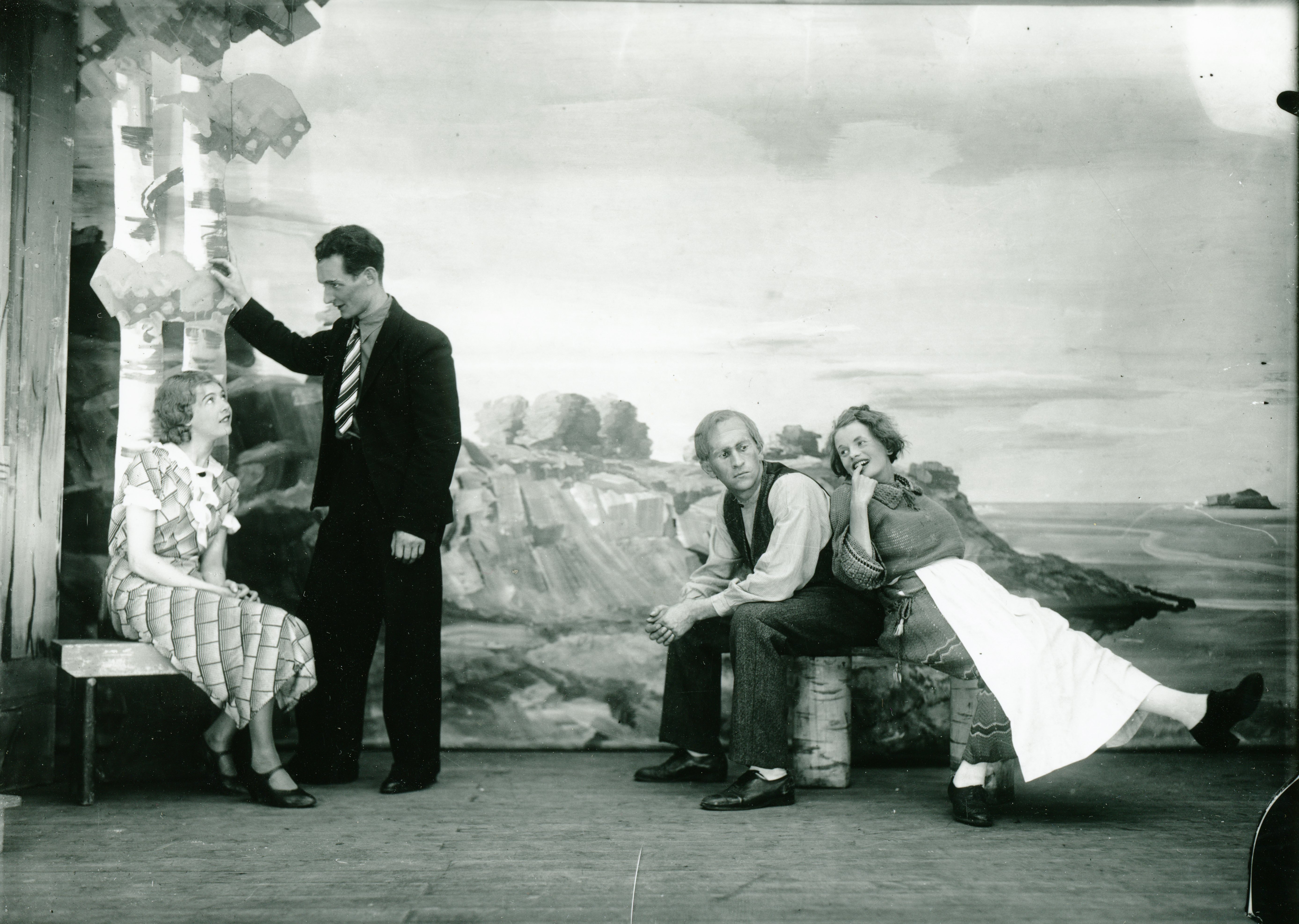 Fotografi fra Komediateatrets produksjon Halte Lena og Blingse Per, 1937