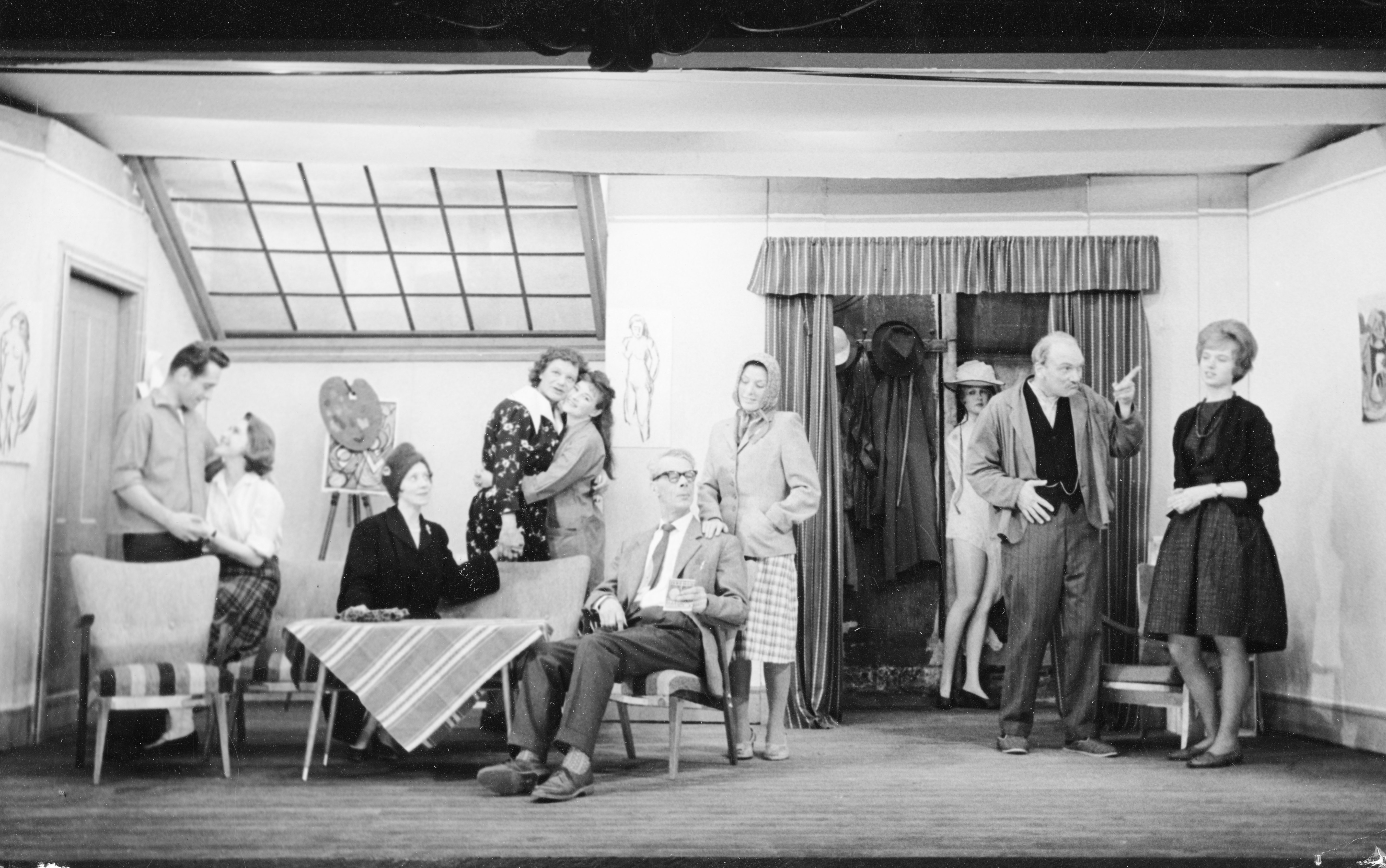 Fotografi fra Komediateatrets produksjon Heia tante Thea! 1961