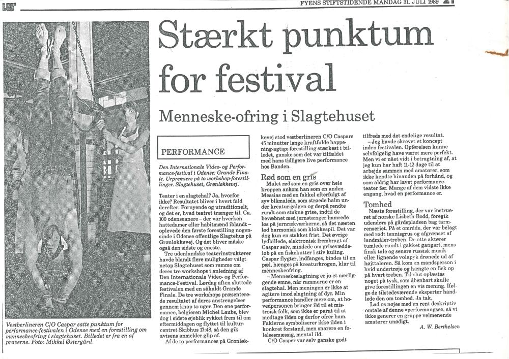 Anmeldelse i Fyens Stiftstidende av Odense Internajsonale Video- og Performancefestival.