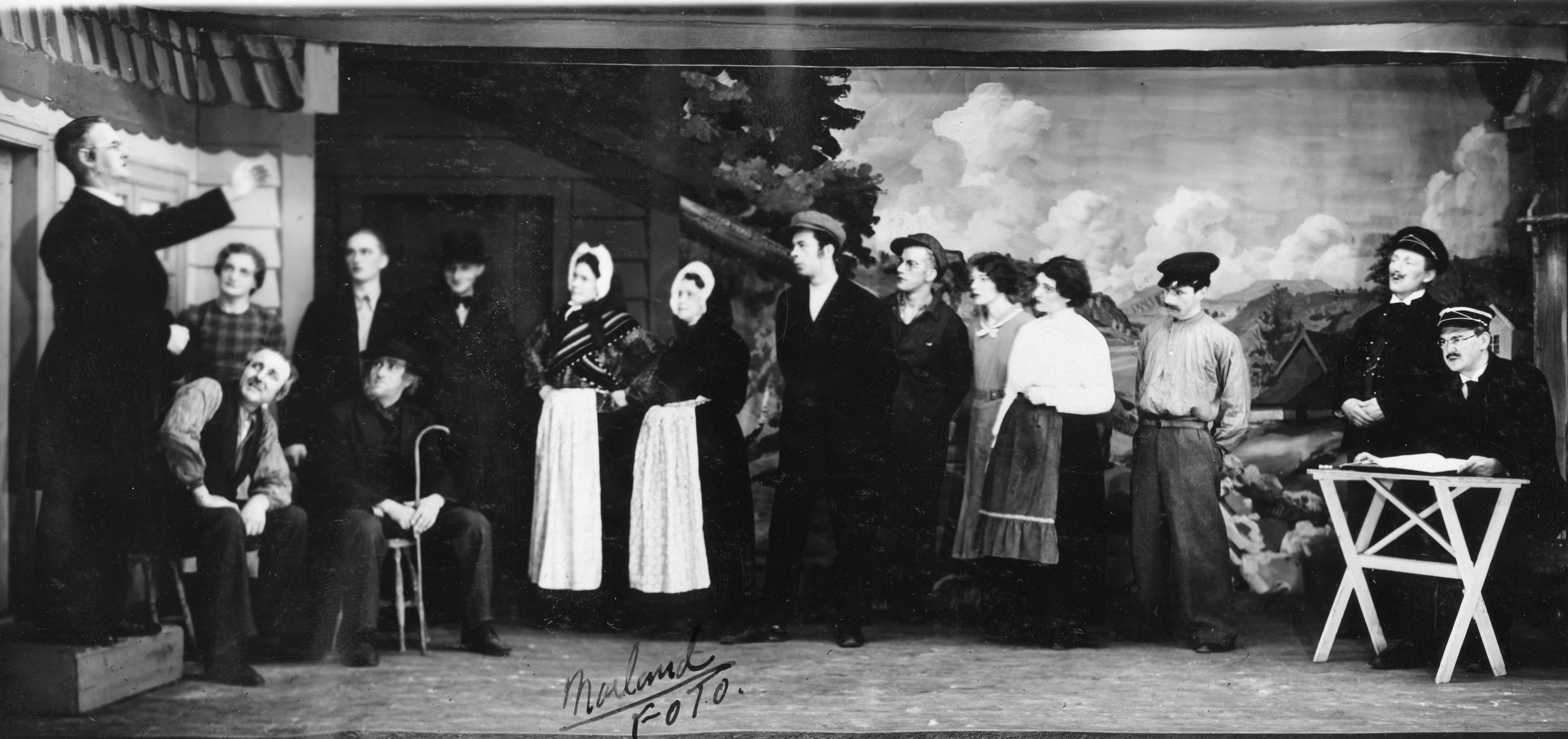 Fotografi fra Komediateatrets produksjon Kjærlighet og melkekrig, 1936.