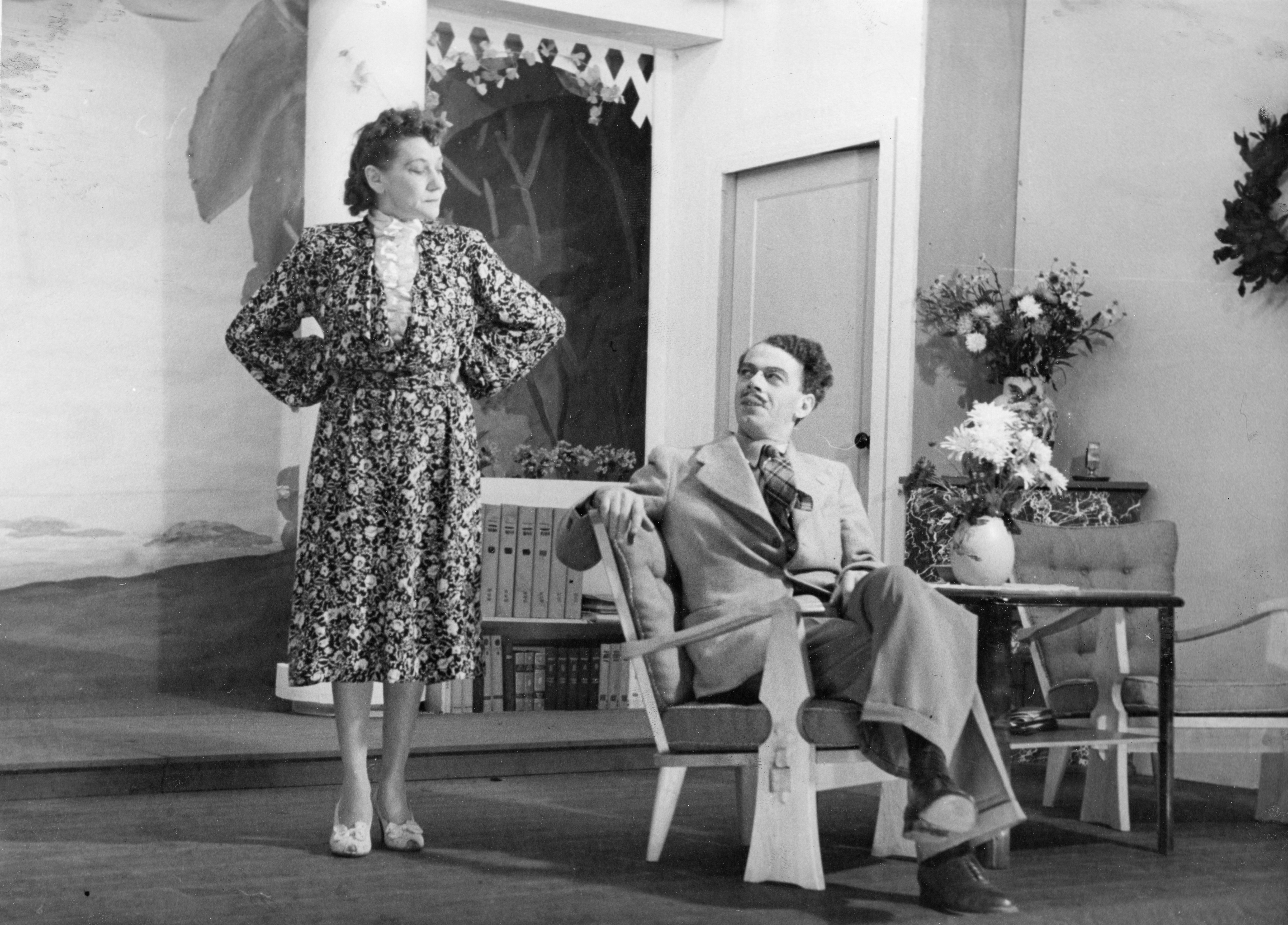 Fotografi fra Komediateatrets produksjon Kjærlighetens farse, 1946.
