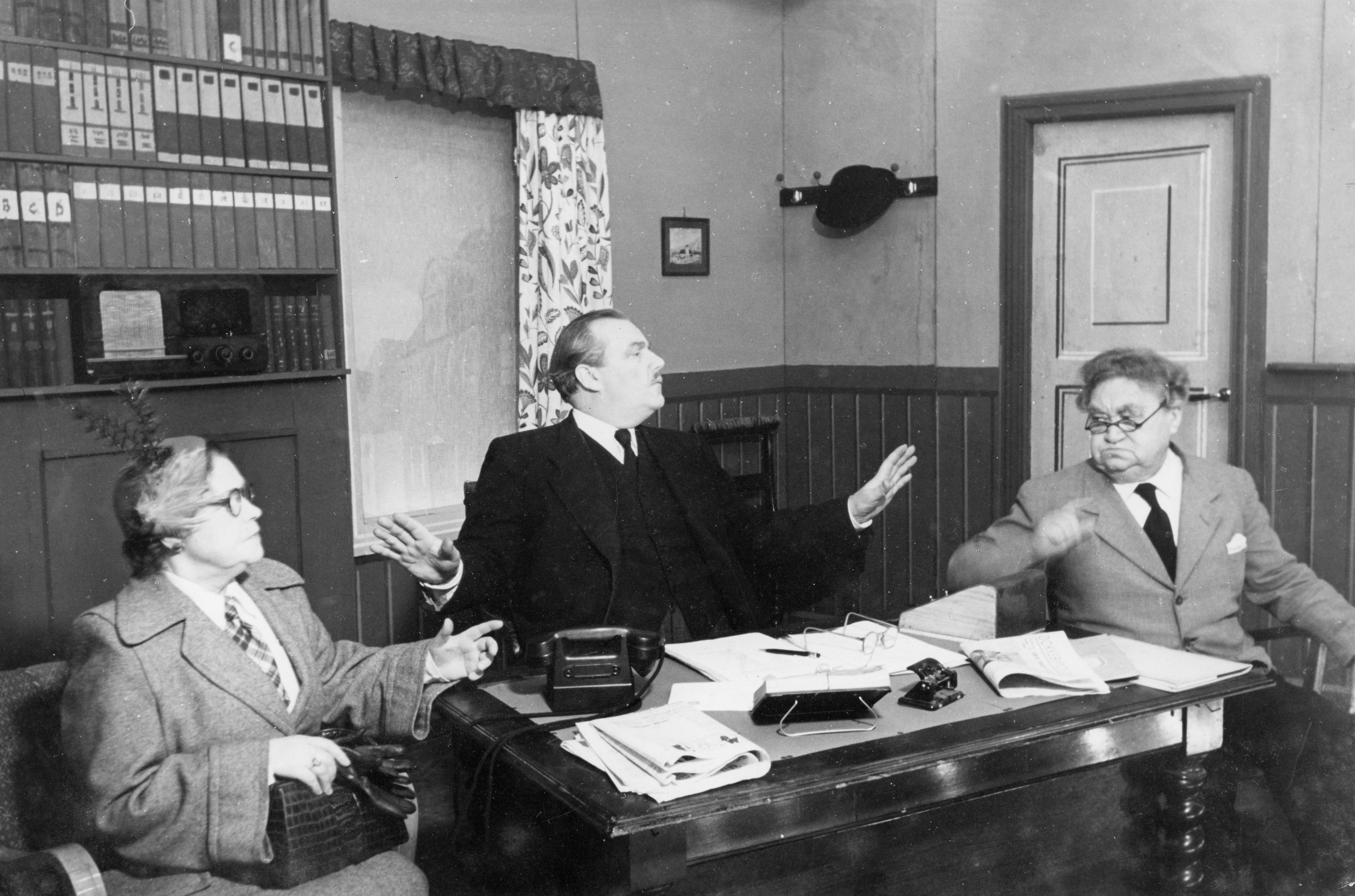Fotografi fra Komediateatrets produksjon Kranselag i Dokkeby, 1954.