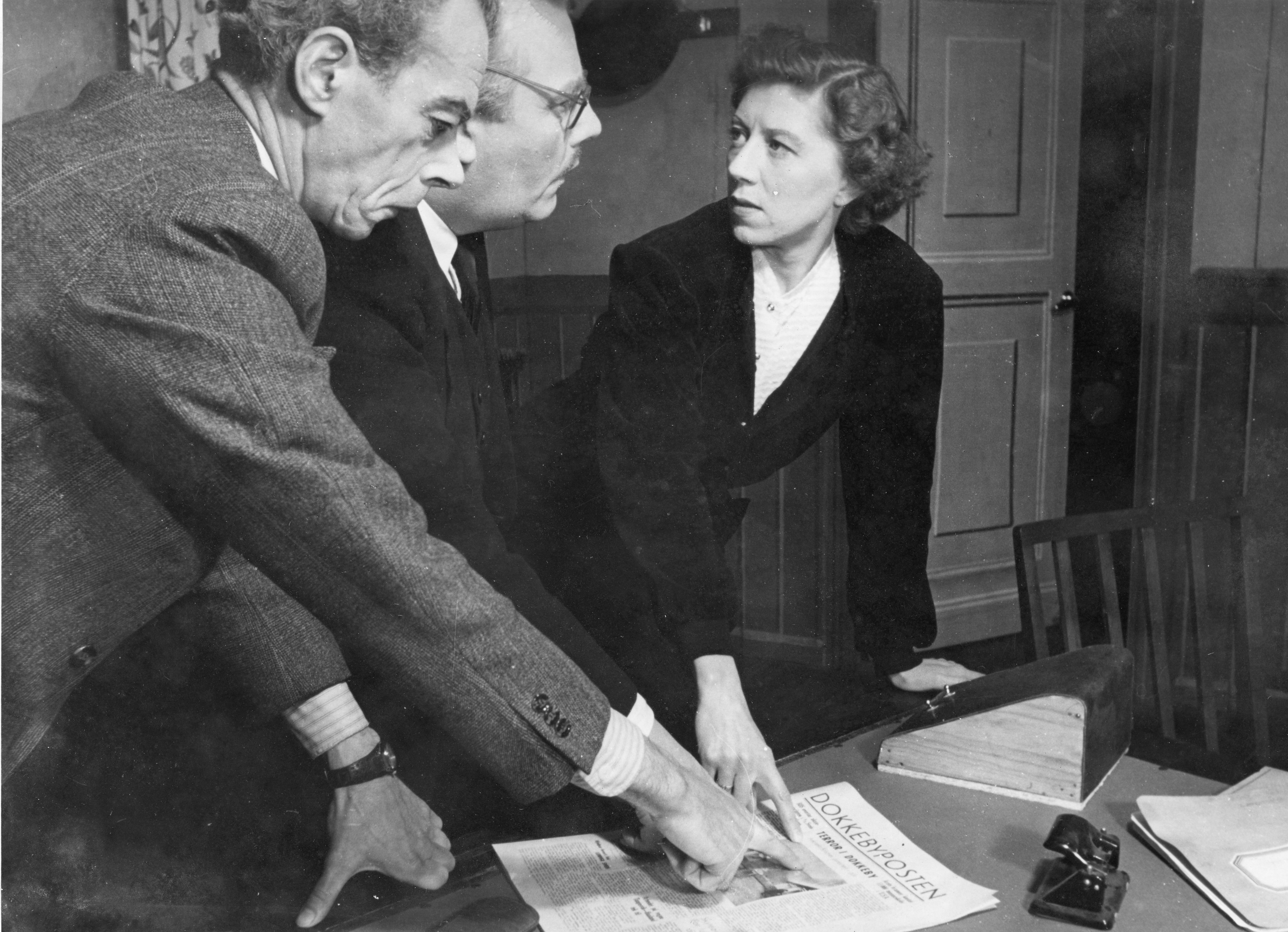 Fotografi fra Komediateatrets produksjon Kranselag i Dokkeby, 1954.