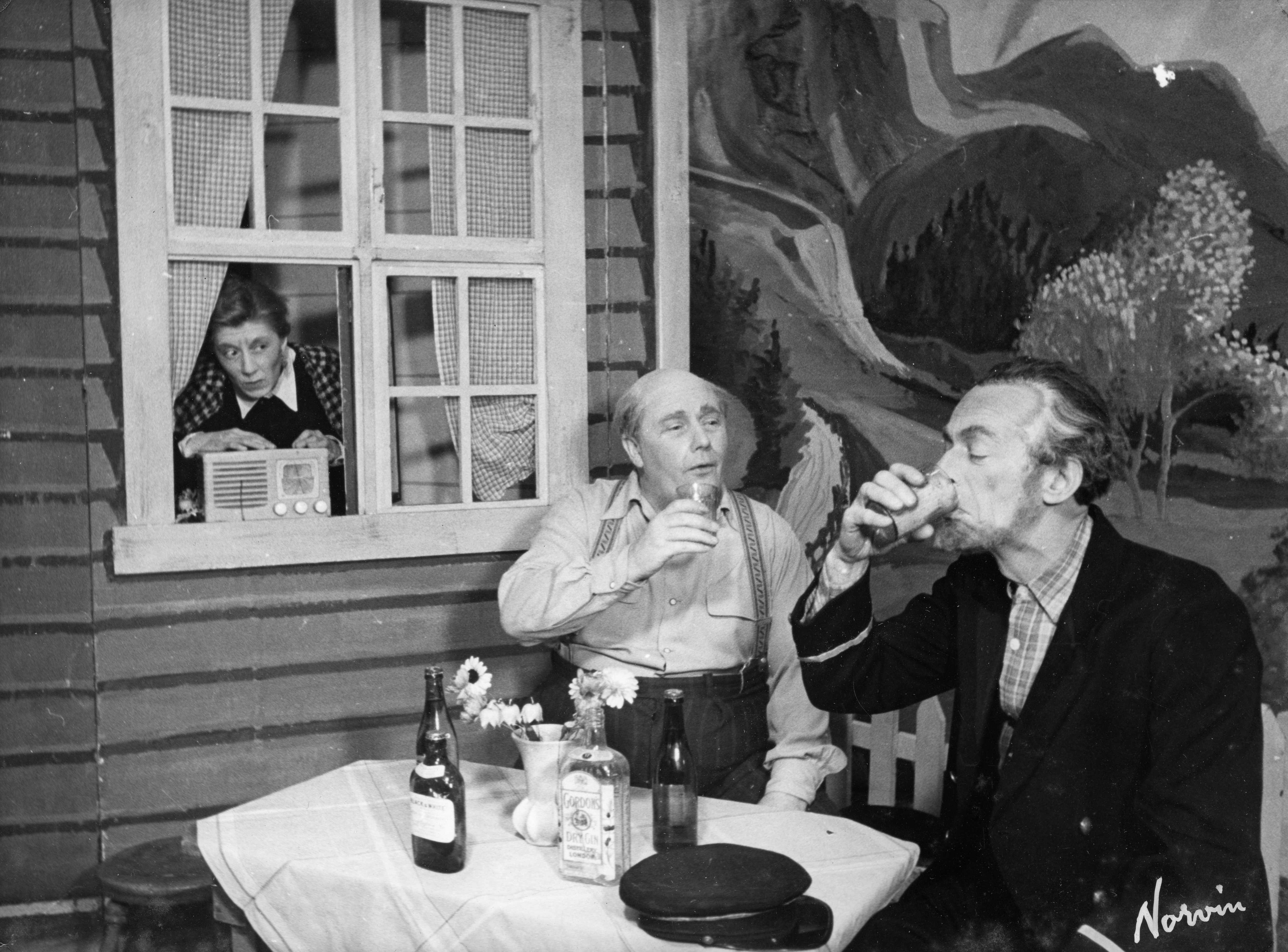 Fotografi fra Komediateatrets produksjon Lensmannsbrura, 1954.