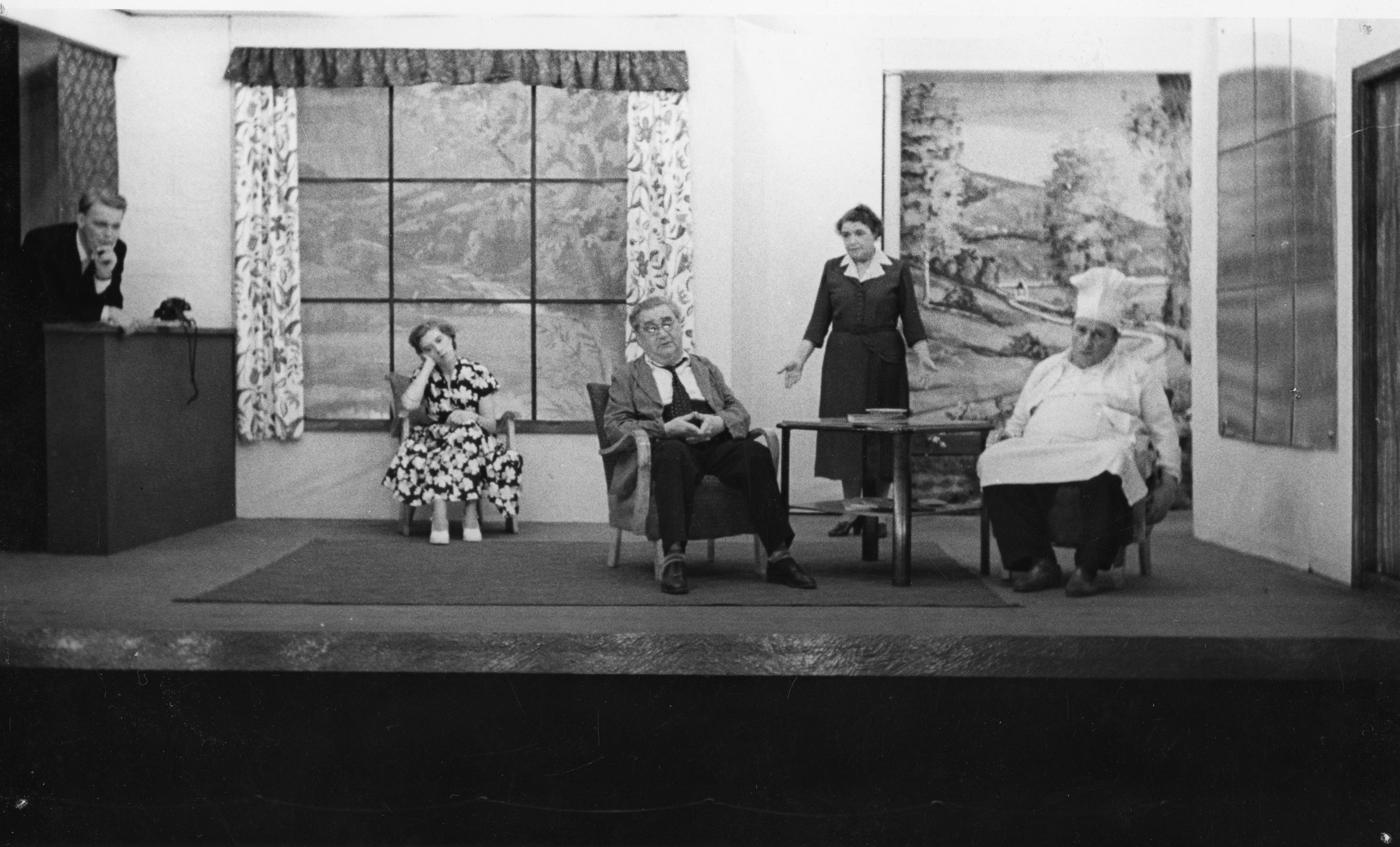 Fotografi fra Komediateatrets produksjon Spøkelseshotellet, 1953