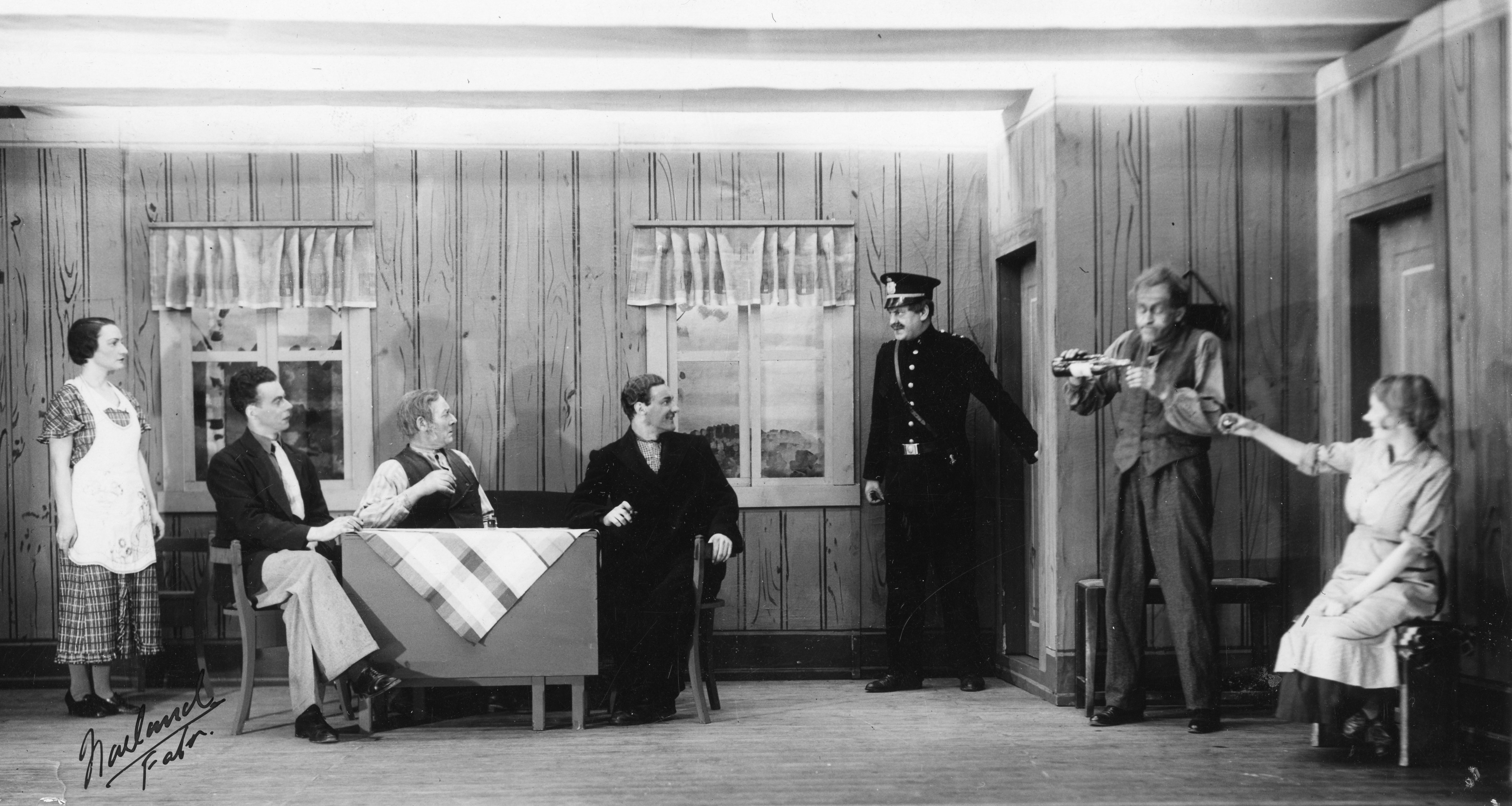 Fotografi fra Komediateatrets produksjon Stor ståhei om Juliane, 1937.
