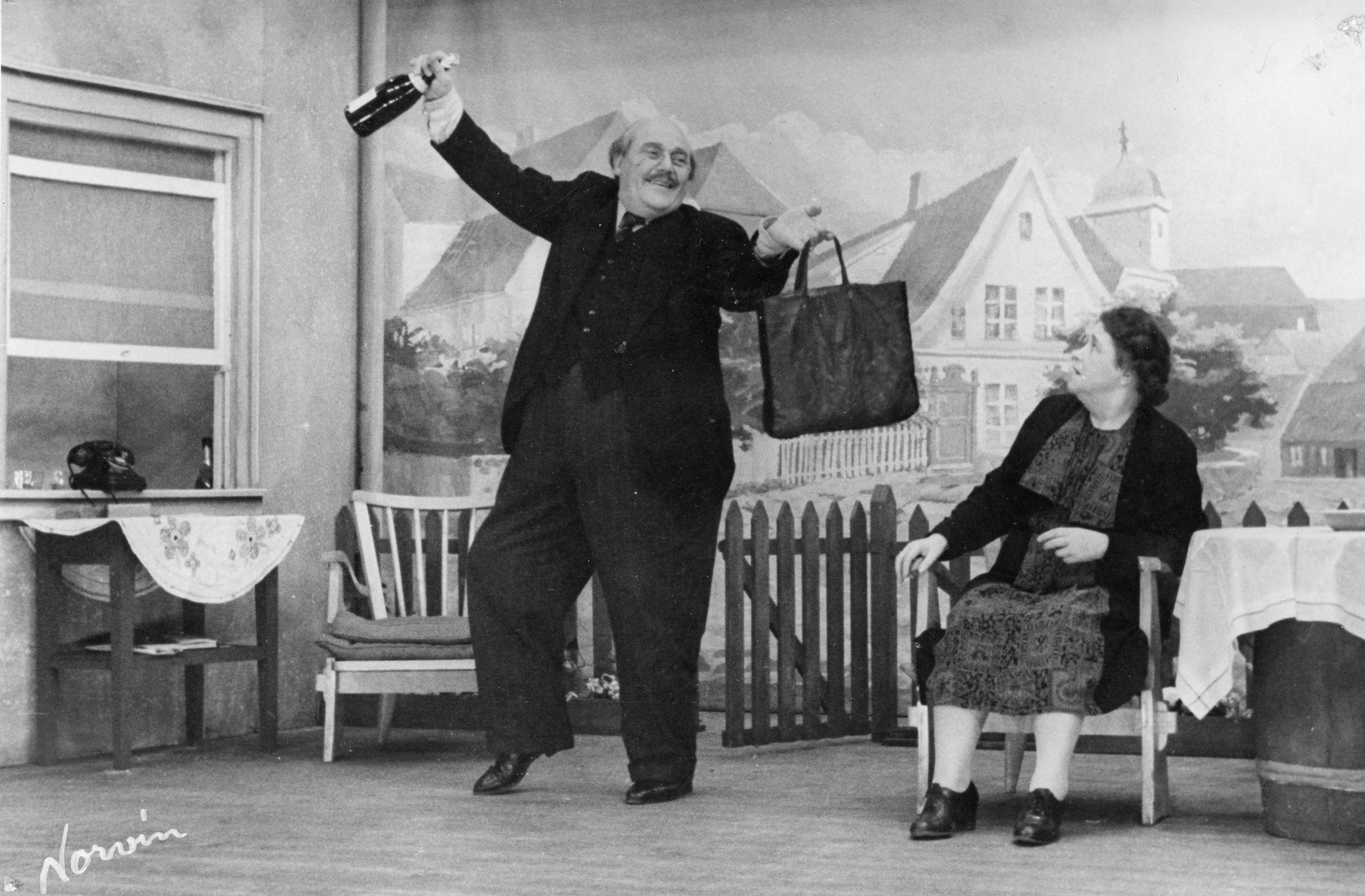 Fotografi fra Komediateatrets produksjon Tøffelhelten, 1953.