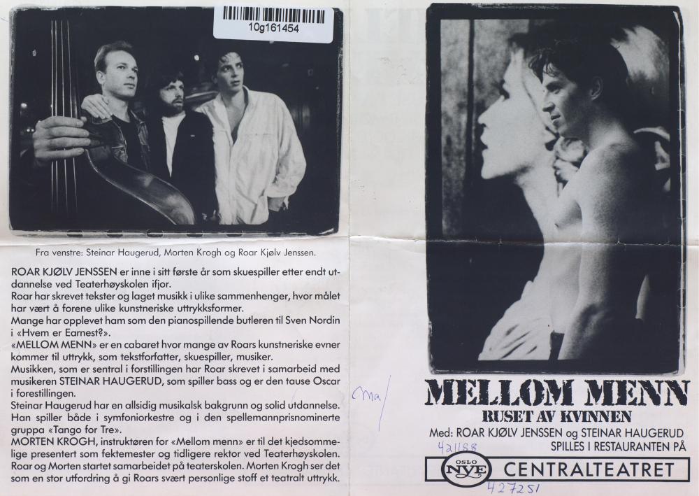 Forestillingsprogram til Oslo Nye Teaters produksjon Mellom menn, ruset av kvinnen (1991).