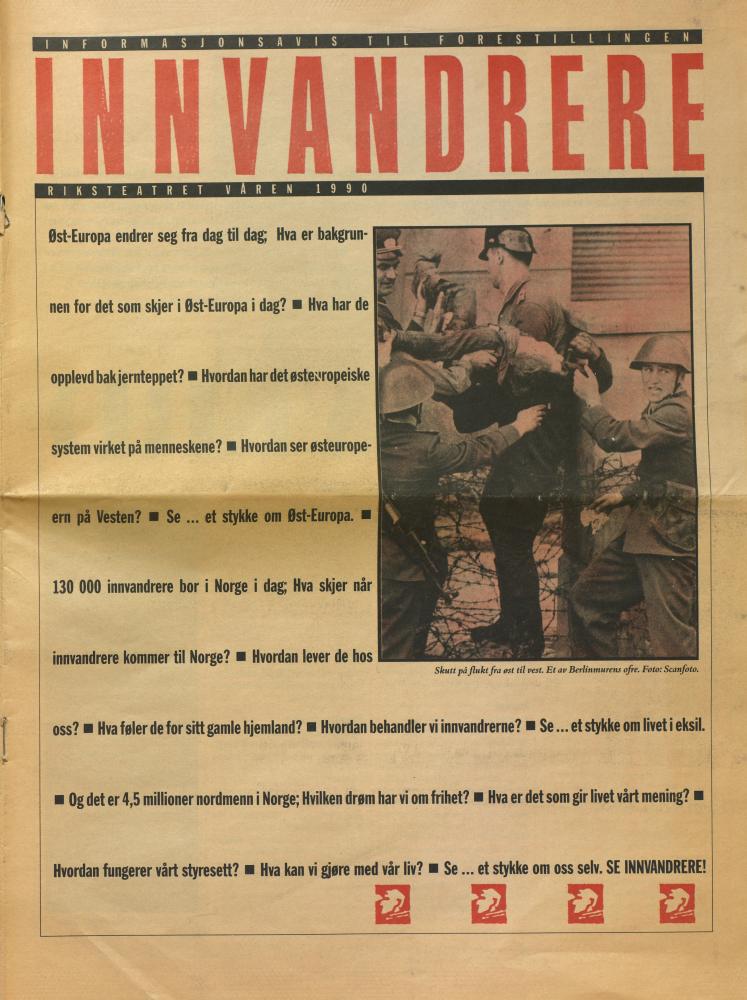 Forestillingsprogram til Riksteatrets produksjon Innvandrere (1990)