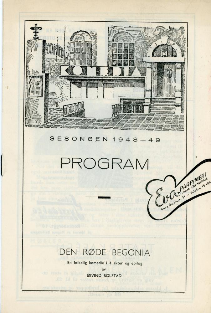 Program fra Komediateatrets produksjon Den røde begonia, 1948.
