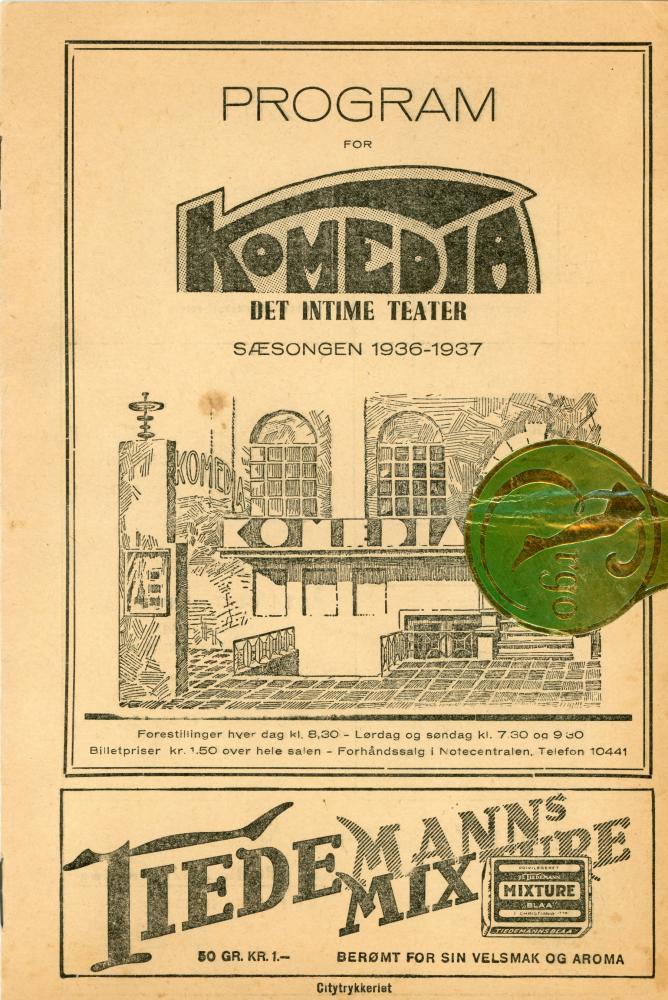 Program fra Komediateatrets produksjon Ljugar-Lars, 1936.
