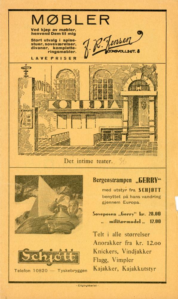 Program fra Komediateatrets produksjon Pappa på galei, 1936.