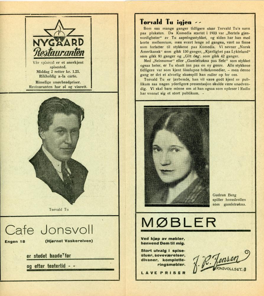 Program fra Komediateatrets produksjon Seinsumar, 1936.