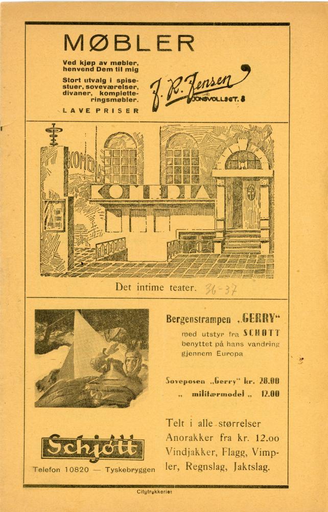Program fra Komediateatrets produksjon Sommergjesten, 1936.