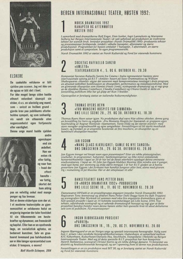 Sesongprogram BIT Teatergarasjen høst 1992.