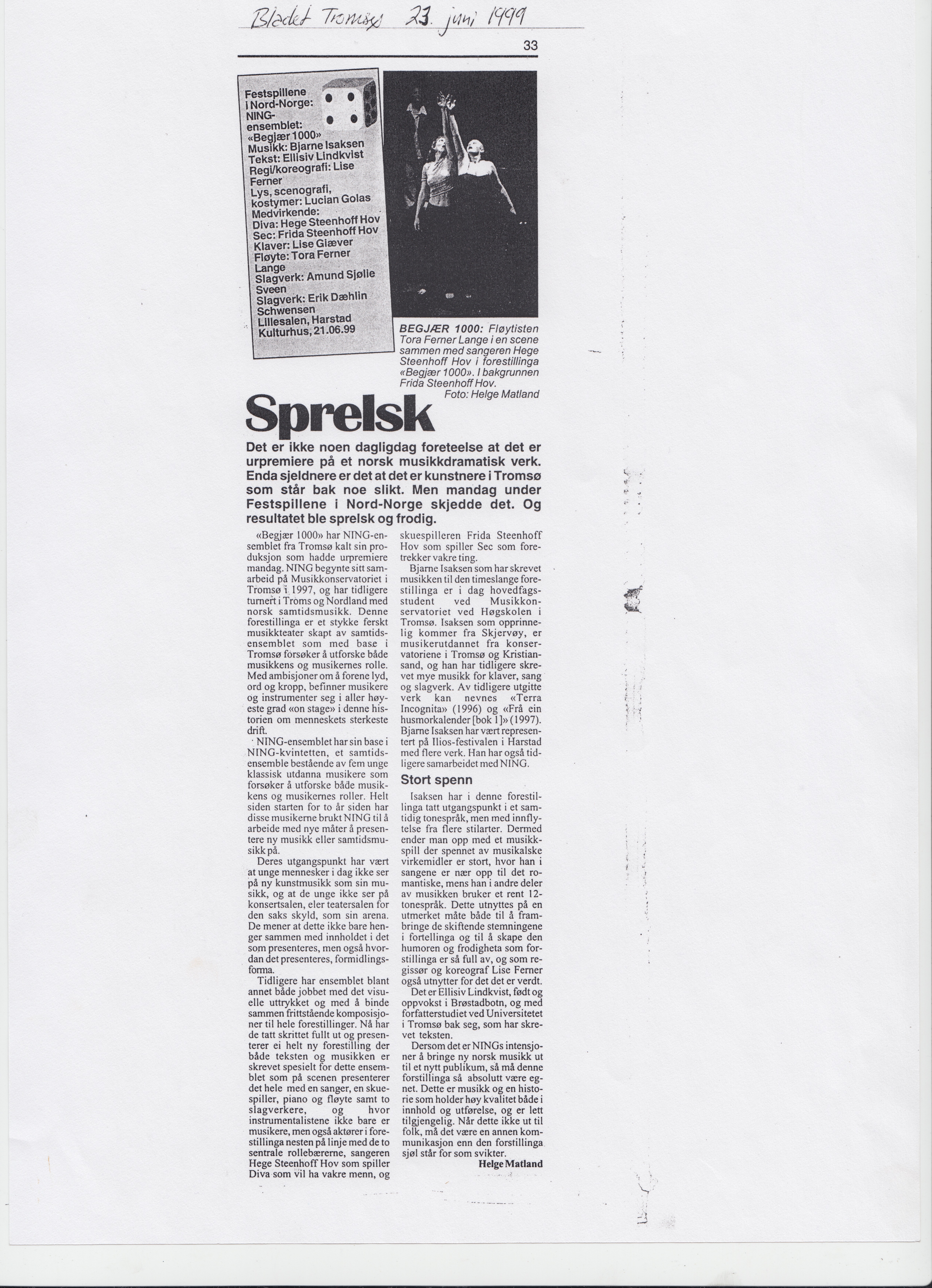 Anmeldelse av Nings forestilling Begjær 1000 (1999)