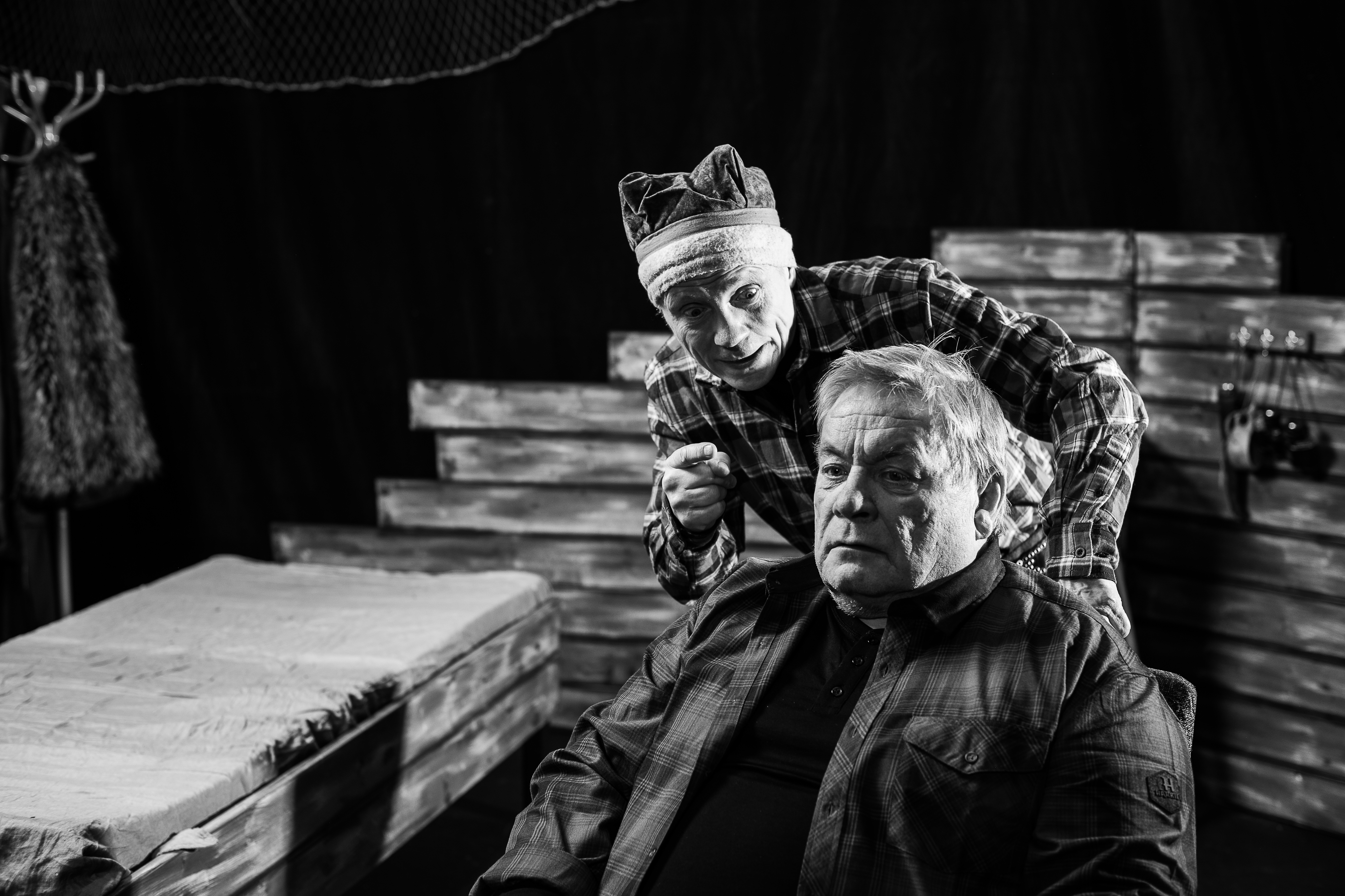 Forestillingsfoto fra Beaivváš Sámi Našunálateáhters produksjon Bohtos dál dat beana / Og så kan hunden komme (2023)
