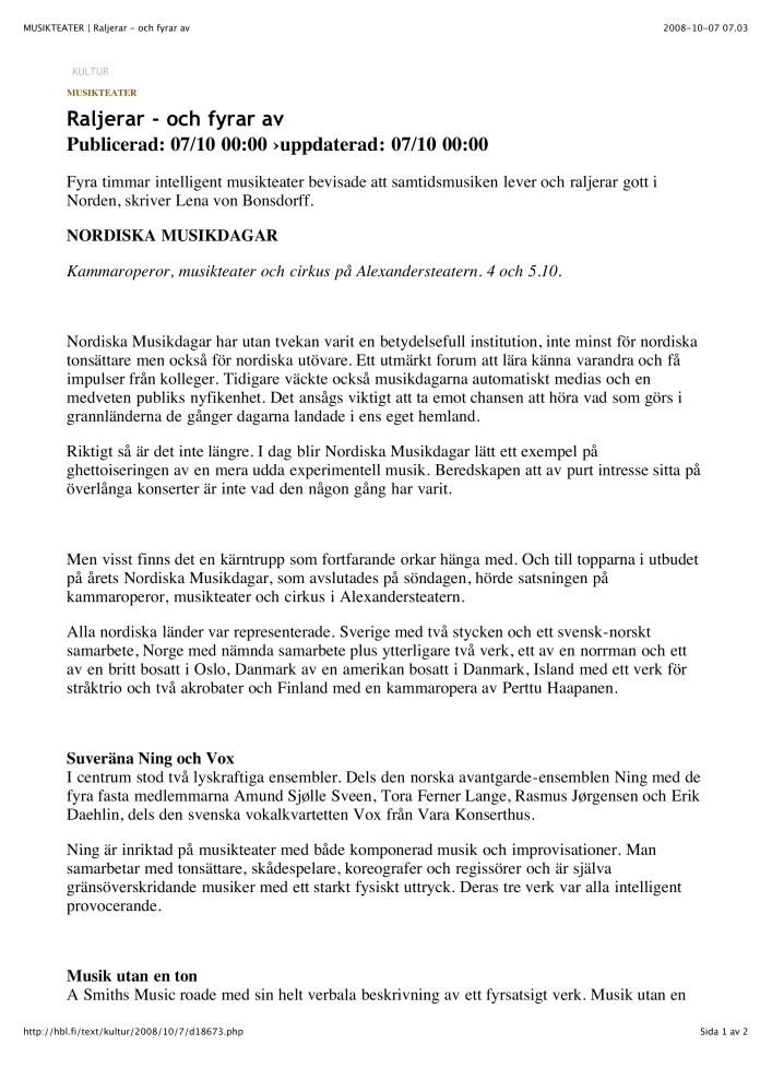 Anmeldelse av Ning på Nordiske musikkdager Helsinki (2008)