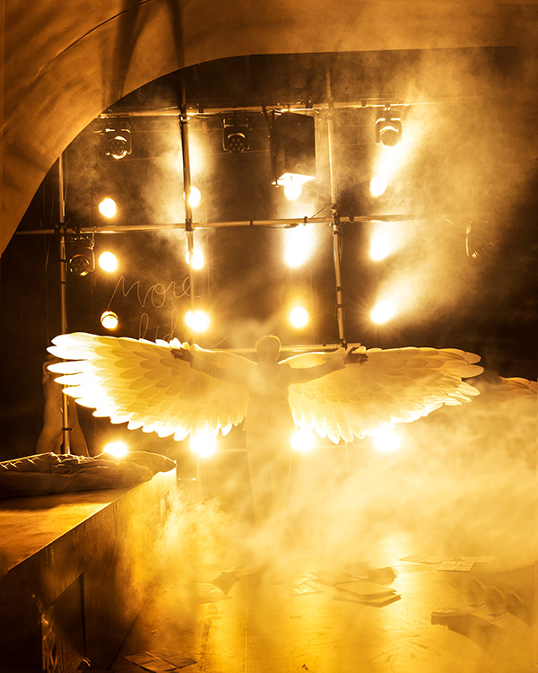 Forestillingsfoto fra Den Nationale Scenes produksjon Engler i Amerika (2021).