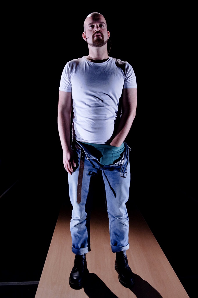 Fotografi fra Teater Manu i samarbeid med Riksteatrets produksjon Jeg var Fritz Moen (2011).