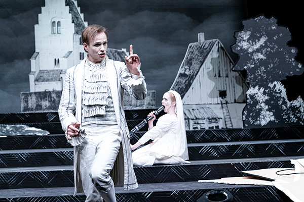 Forestillingsfoto fra Den Nationale Scenes produksjon Erasmus Montanus (2021).