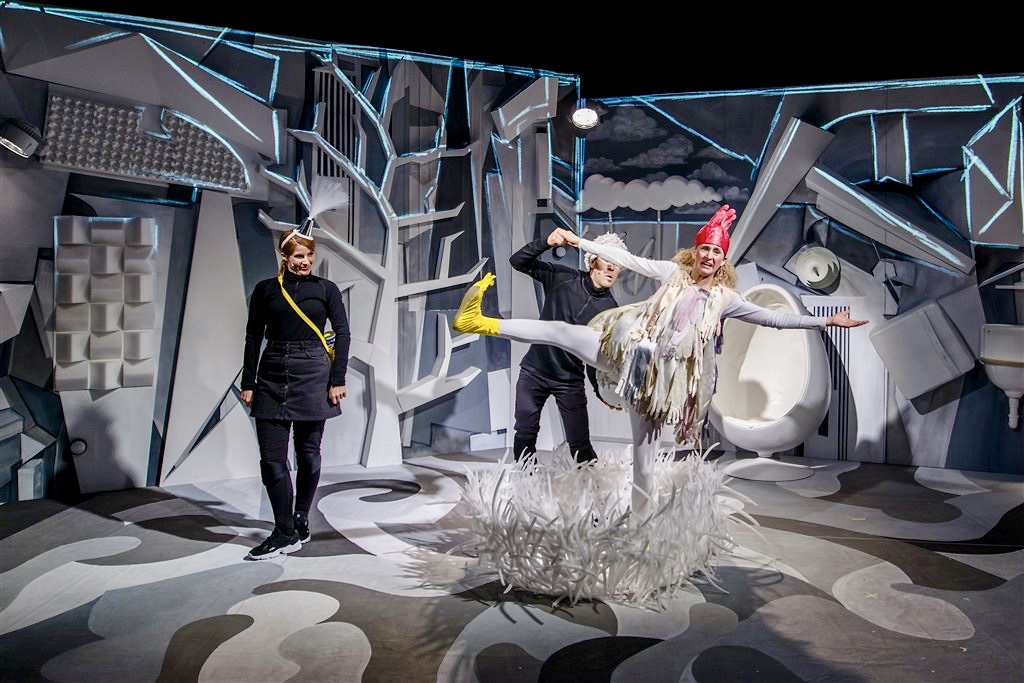 Fotografi fra Riksteatrets produksjon Høna, egget og reven (2021)