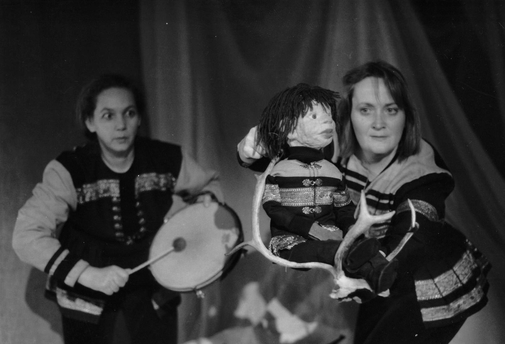 Fotografi fra Klomadu Teaters produksjon Sampo Lampelill (1992).