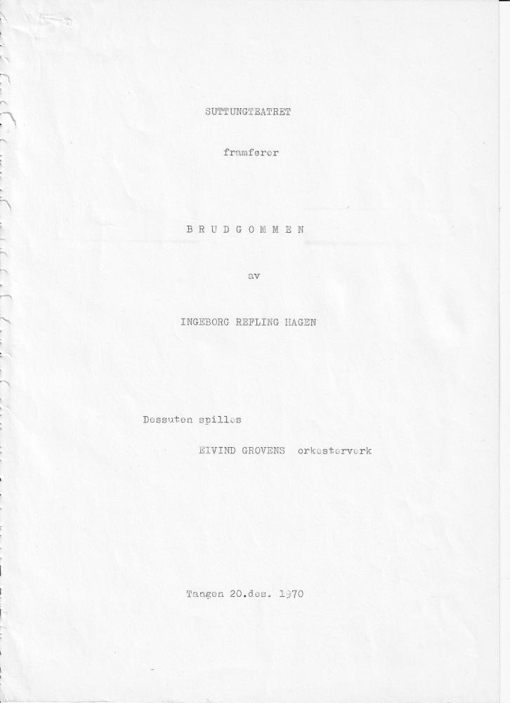 Flygeblad fra Suttungteatrets produksjon "Brudgommen" (1970)